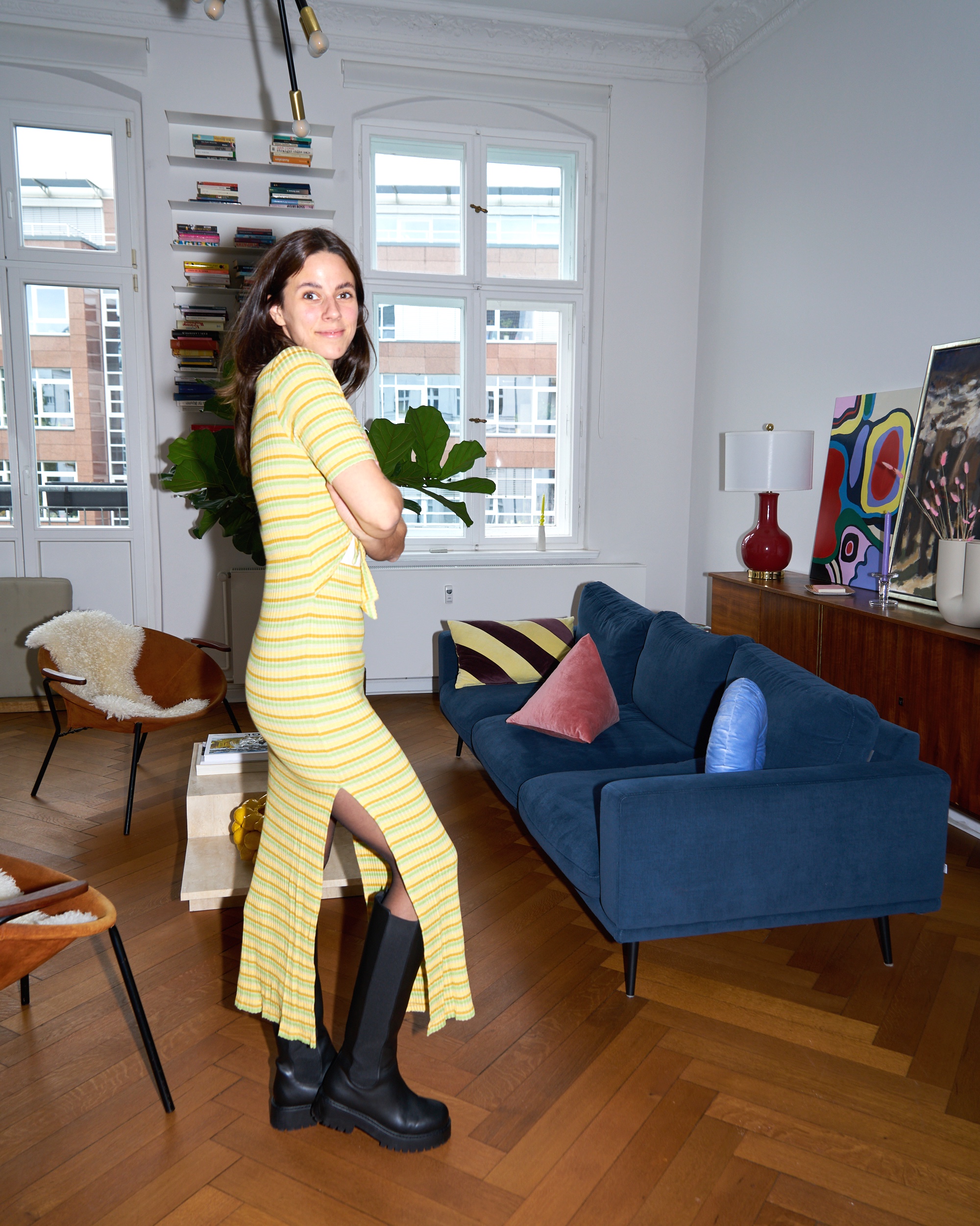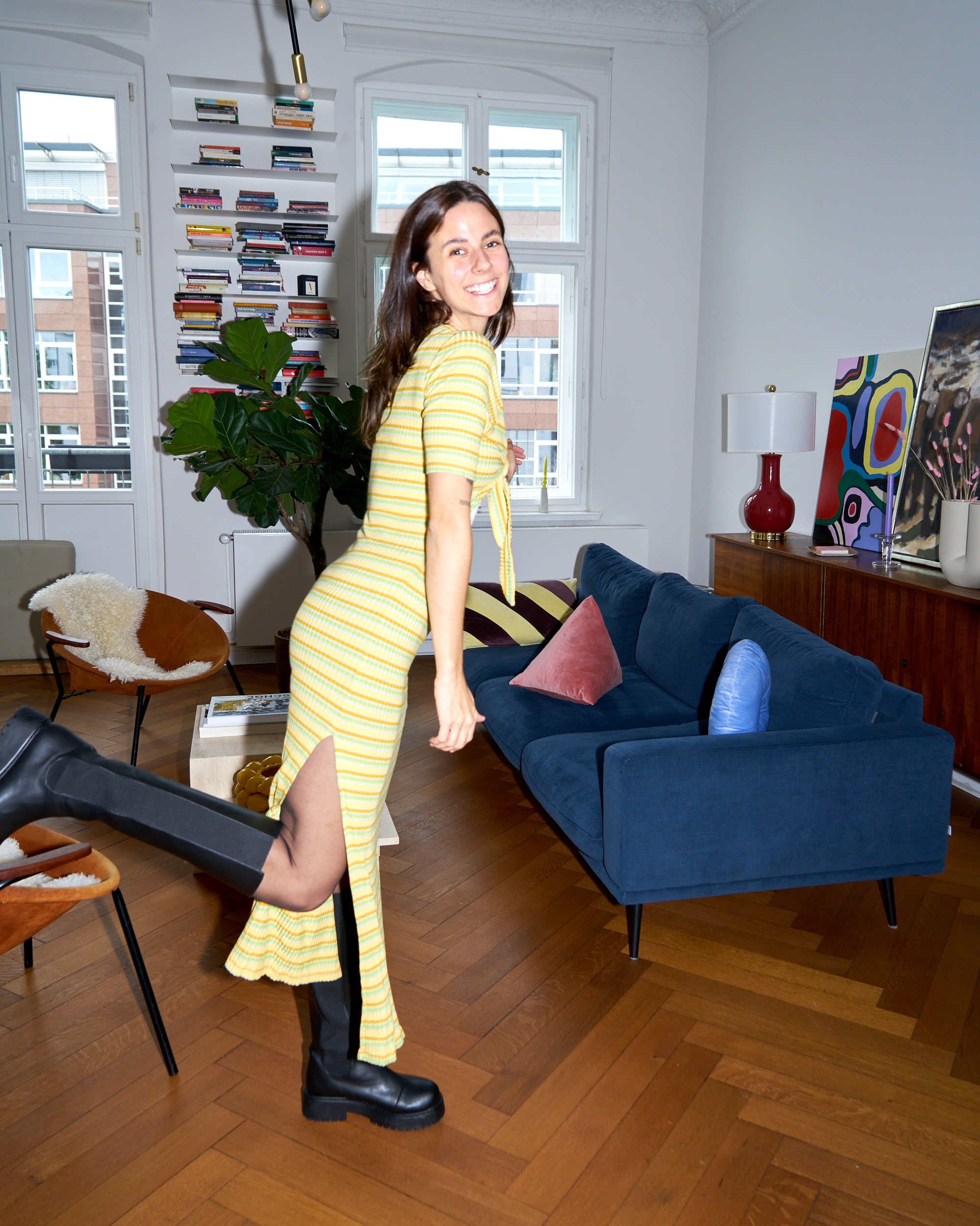 Dabei schwöre ich: In diesem Moment hat sich alles genau richtig angefühlt. Ich würde also sagen, dass der Teufel im Detail liegt. Beim nächsten Mal darf der zum Kleid zweckentfremdete Pullover gern etwas länger sein oder das wahre Kleid darunter für sich allein stehen. Je nachdem. Im Grunde bin ich aber noch immer schwer angetan vom Prinzip „Schlabberstrickpulloverkleid zu derben Stiefeln.“ Es wird mir hoffentlich glücken, irgendwann.