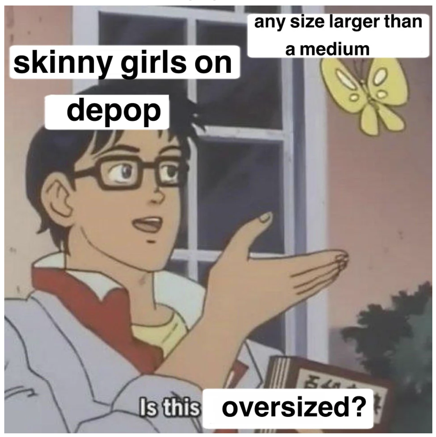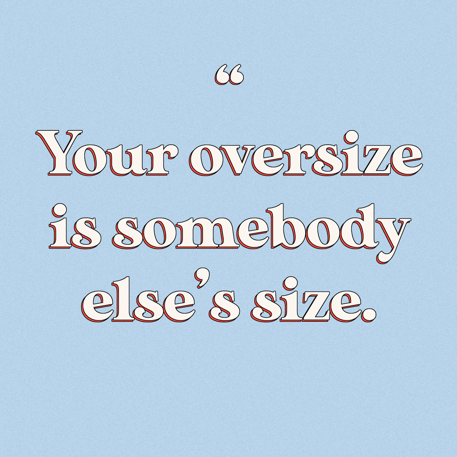 Eigentlich also ist die Problematik eindeutig, im Klartext heißt das: Weite Silhouetten mit Begriffen wie XXL zu beschreiben oder eben jene Größe mit „oversize“ gleichzusetzen, kann schlicht und ergreifend verletzend sein, ist damit also per se schon einmal nicht in Ordnung — insbesondere dann nicht, wenn die Vorgehensweise im Fall von all den Online Vintage Shops, die es zuhauf auf Instagram, Depop & Co gibt, genutzt wird, um Konfektionsgrößen in den Produktbeschreibungen als „oversize fit“ anzupreisen, bloß weil sie an schlankeren Personen, die eigentlich nicht für die Größe bestimmt sind, präsentiert werden. Passender wären hier also vielmehr die Angabe der Konfektionsgröße sowie der Hinweis, dass das Kleidungsstück an einer Person, die üblicherweise eine kleinere Größe trägt, fotografiert wurde und somit weiter ausfällt. Letztlich nämlich würde dies auch weniger Menschen, nämlich jene, für die besagte Kreationen gefertigt wurden, ausgrenzen. Kurzum: Sobald es um die Benennung von Passformen und Silhouetten in der Mode geht, sollten wir uns den Begriff „XXL“ schleunigst abgewöhnen. Das gilt übrigens auch für die Verwendung des Begriffs „oversize“, sofern wir damit lediglich jene Kleidungsstücke meinen, die wir in (für uns) zu großen Größen kaufen, um eine weite Passform zu erzielen.