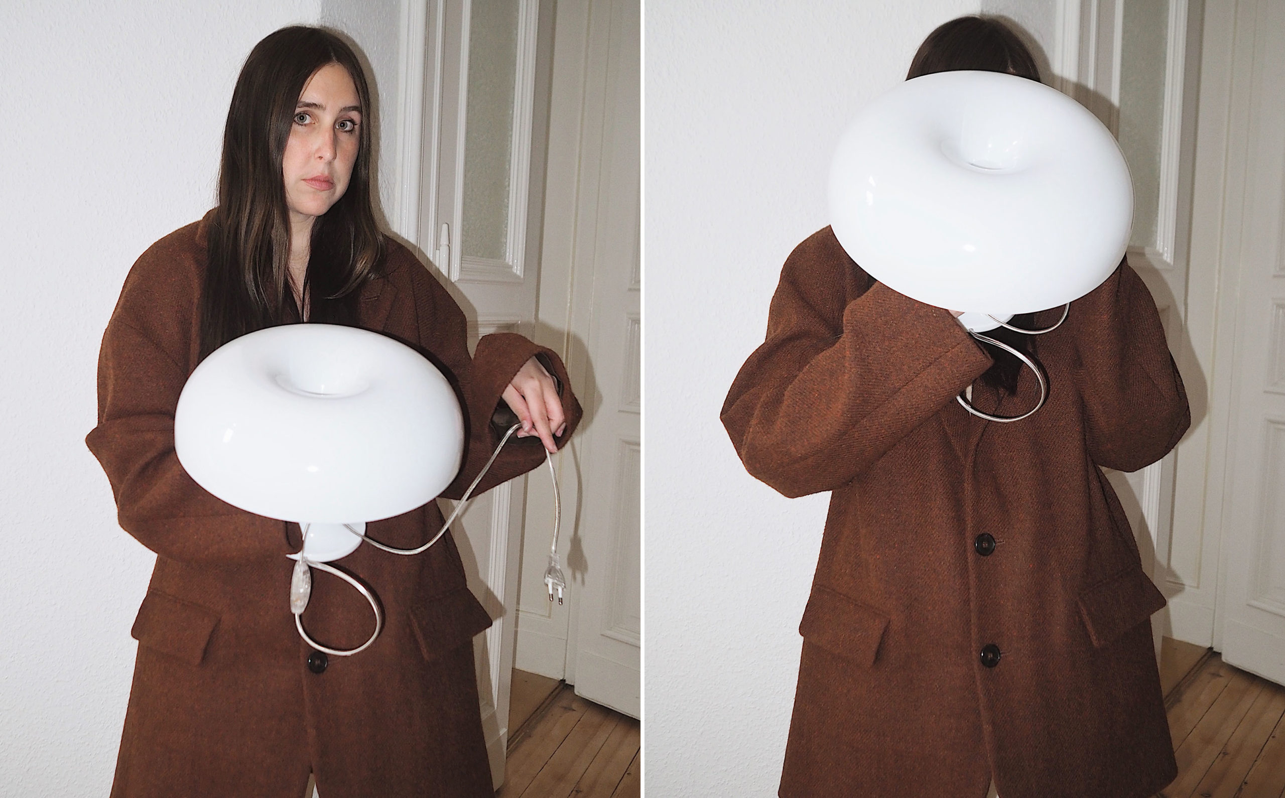 Das schöne Stück ist dank ABS-Kunstharz federleicht und macht obendrein das vielleicht gemütlichste Licht, das mich heimlich davon träumen lässt, gönnerisch ein Glas Whiskey zu schwenken (obwohl ich Whiskey nicht einmal mag), während im Hintergrund „La Bohème“ von Charles Aznavour läuft. Das Highlight ist aber natürlich das Design selbst, das zuweilen an eine Art futuristischen Pilz erinnert. Ich persönlich finde es ja so schön, dass ich täglich mindestens zehn Minuten damit verbringe, es verliebt anzustarren, was natürlich wahnsinnig dämlich klingt, aber tatsächlich stimmt. Kurzum: Eine schönere Lampe für meine Kommode könnte ich mir nicht vorstellen und ich wäre auch überhaupt nicht böse, wenn sie in jedem anderen Wohnzimmer stehen würde.