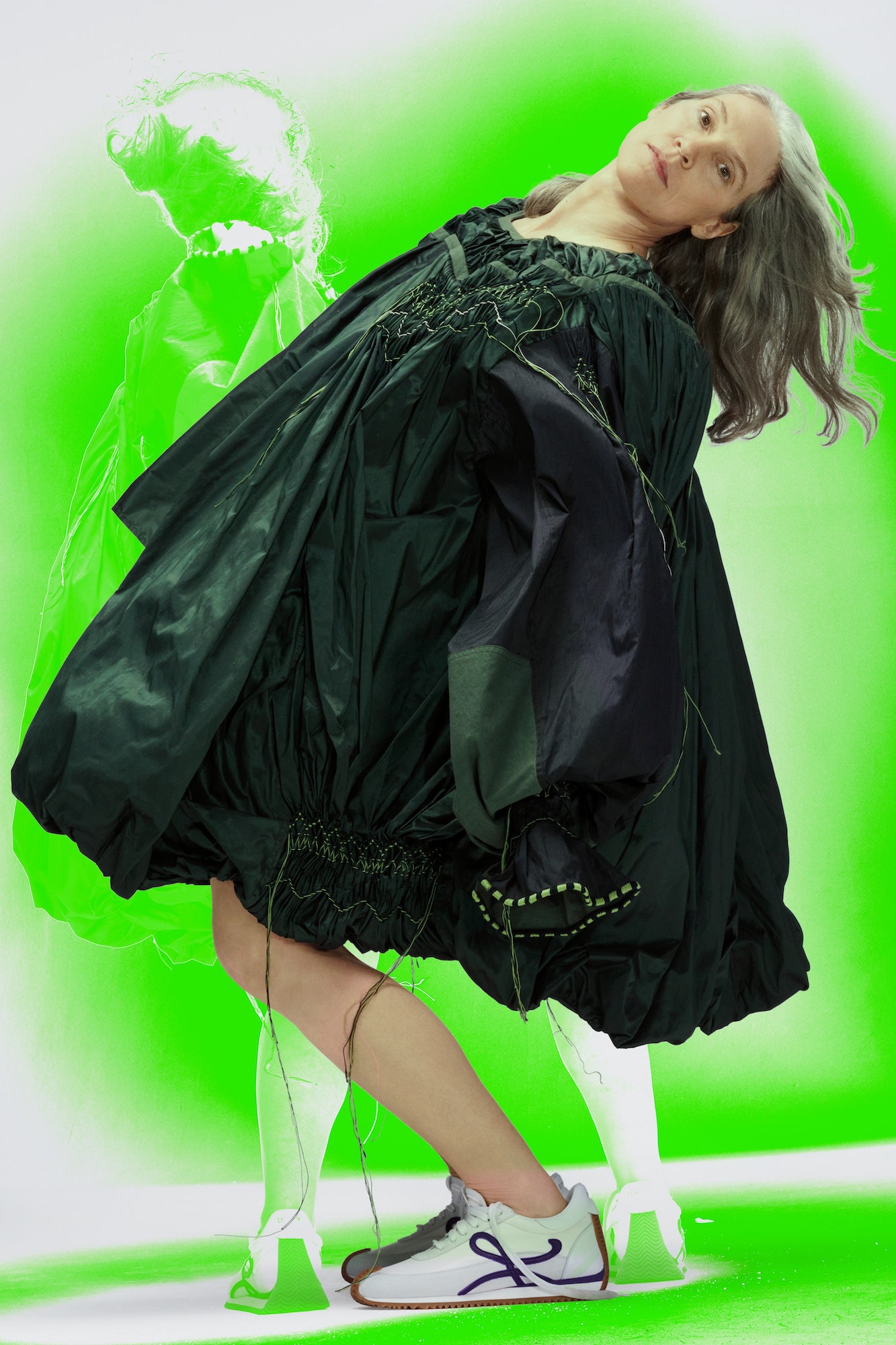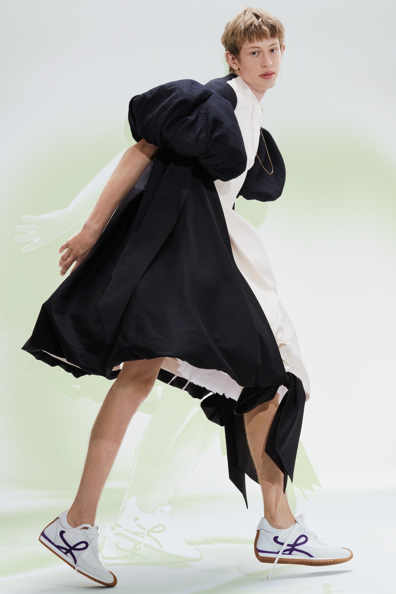Zur Show: „We have to start loving fashion again. We don’t know what tomorrow’s going to bring. So let’s enjoy it!”, sagte Jonathan Anderson und präsentierte eine SS21 Kollektion, die nicht nur mit voluminösen Silhouetten spielt, sondern innerhalb des Lookbooks auch 16 internationale Frauen wie etwa die britische Künstlerin Anthea Hamilton featured. Seine Designs präsentierte er nicht etwa innerhalb einer Show, sondern anhand von interaktiven Pressekits, die aus großen Postern, Scheren und Kleber bestanden — eine Anlehnung an die eigene Arbeit während der Pandemie, in der es schwer war, Stoffe und Materialien zu besorgen, sowie gleichermaßen eine Aufforderung an alle: Kreiert eure eigene Fantasie und das, was ihr möchtet.