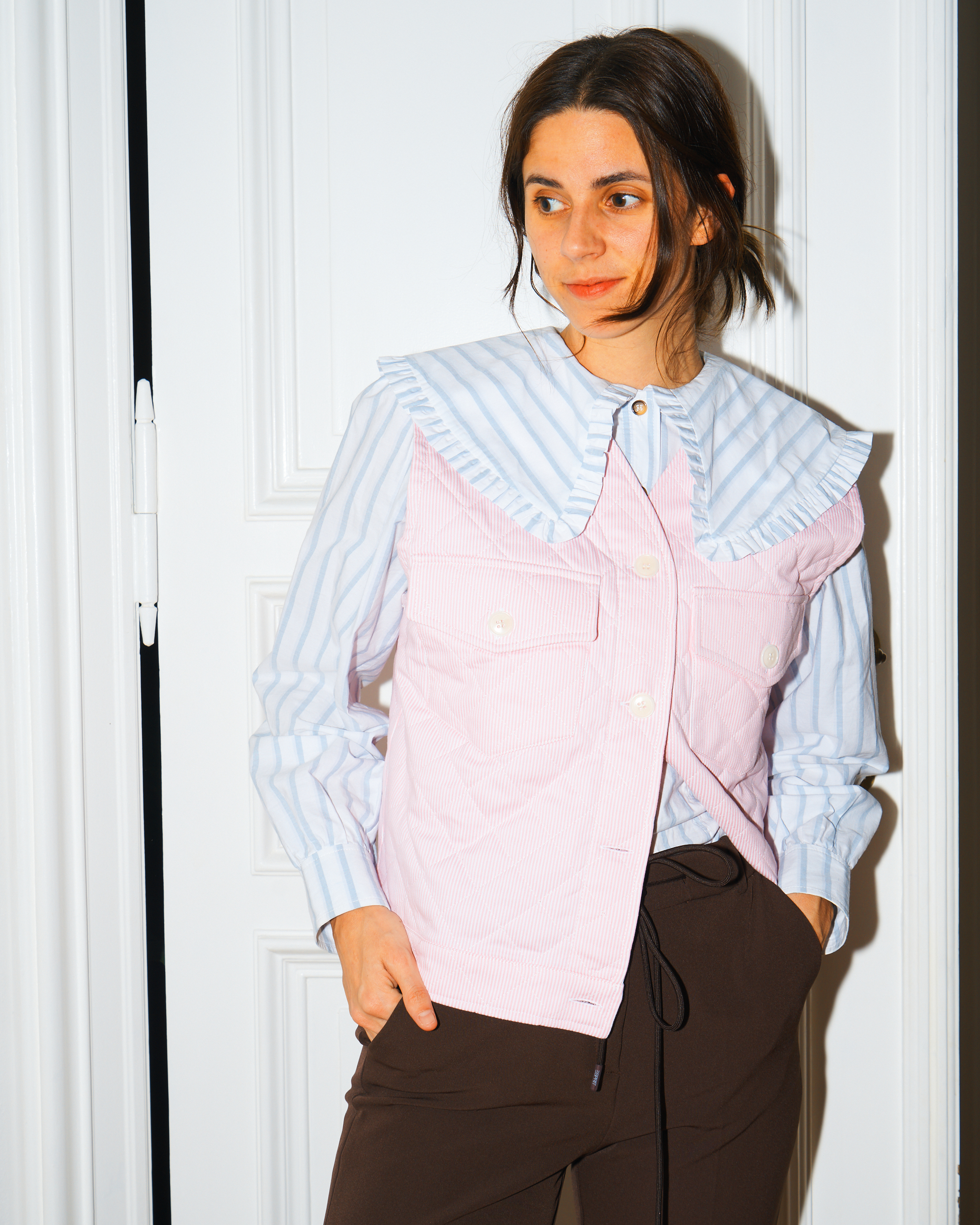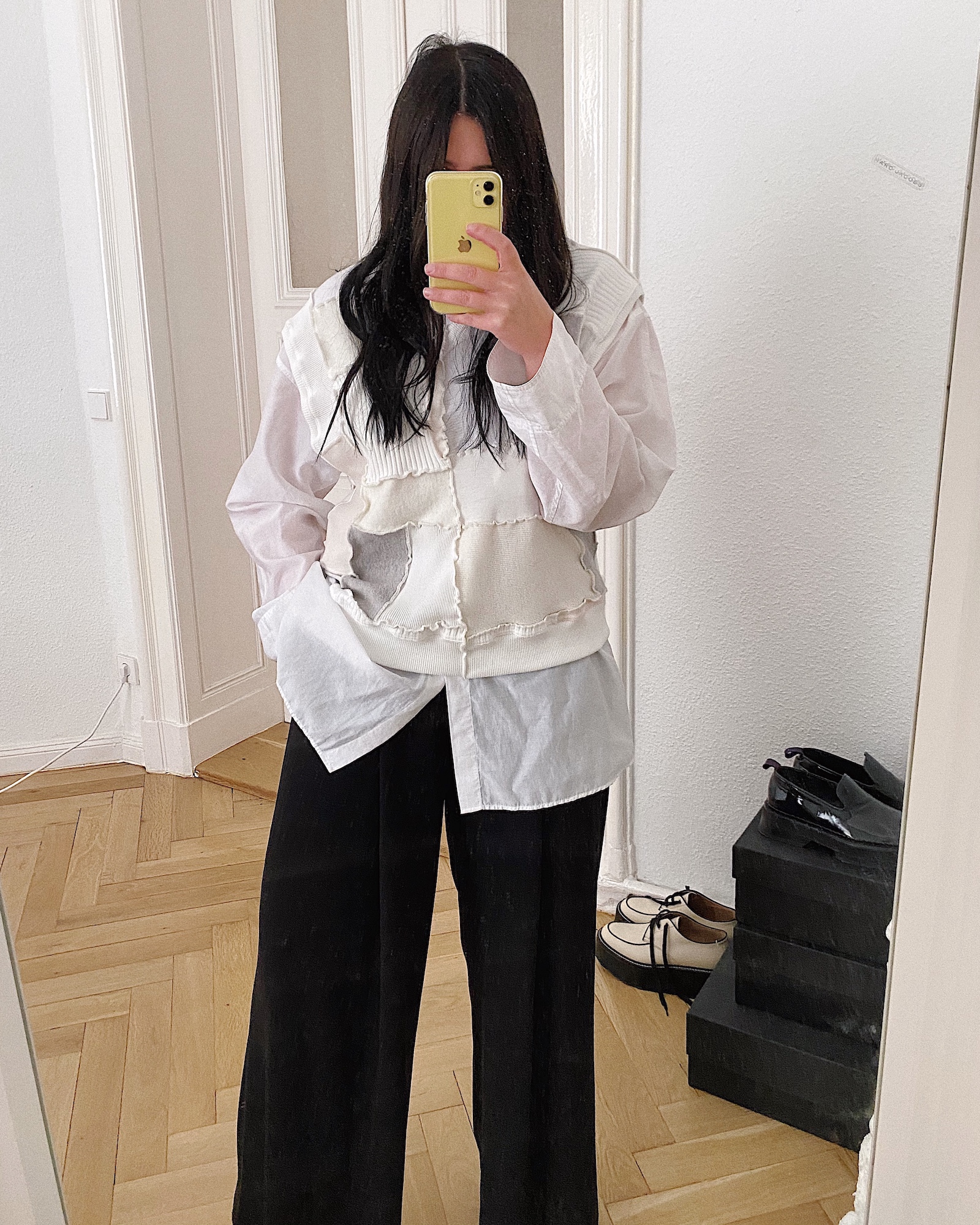 links: Hose: MCQ (alt), Hemd: Filippa K, Pullunder: Christina Seewald (Sample Sale)