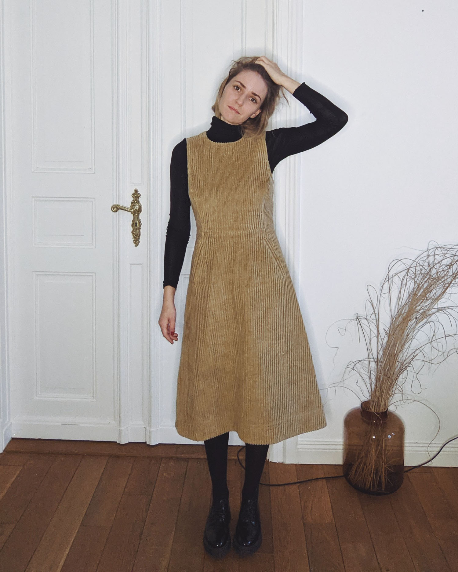 Rollkragen: Arket (alt), Kleid: Baum + Pferdgarten (alt), Strumpfhose: Esprit, Schuhe: Ottod’ame