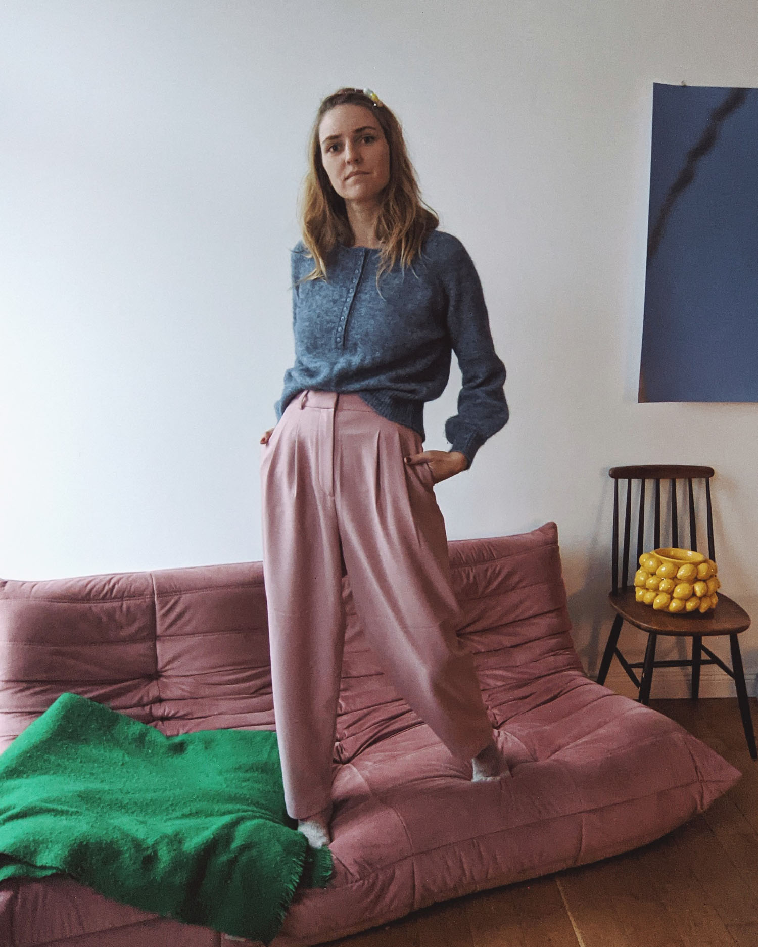 Cardigan: Sezane, Hose: & other Stories, Haarspange: Valet, Kuschelsocken: Esprit