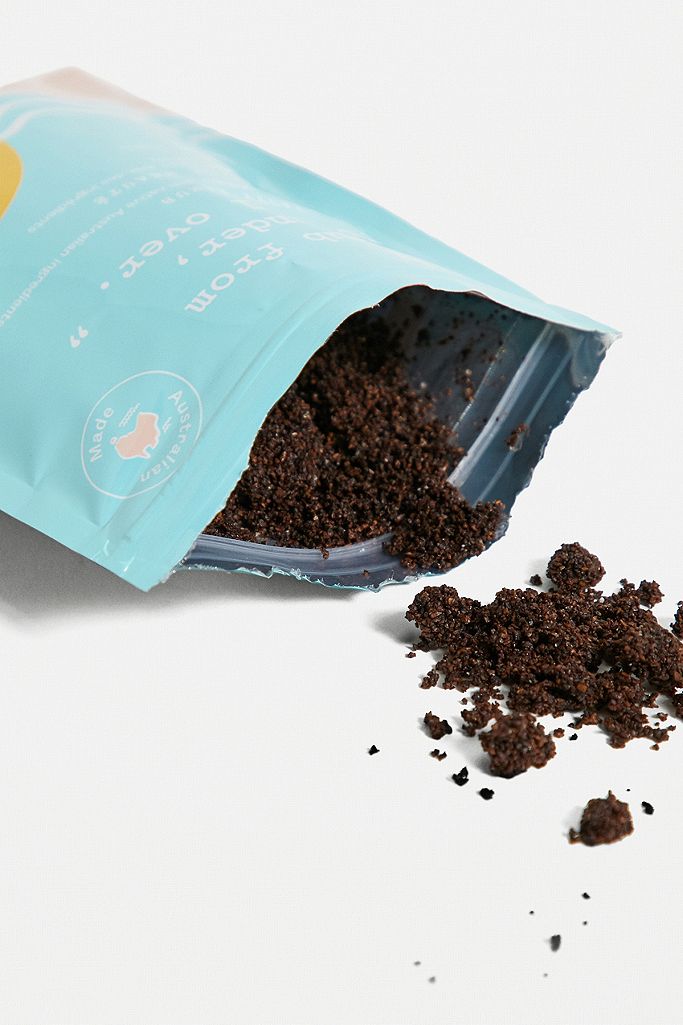 Hier bringt gerösteter Kaffee müde Hautzellen wieder auf Trab. Kokos- und Jojobaöl machen die Haut geschmeidig. Es entsteht eine kleine Sauerei in der Dusche, aber das Hautgefühl danach ist es allemal wert.