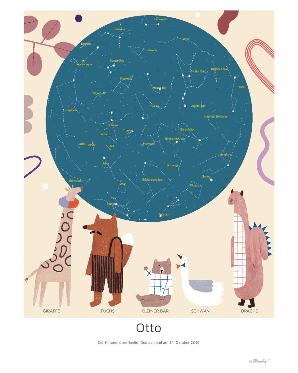 Schönes für die Wände kommt in dieser Woche aus dem Hause MrStarsky: Das kleine Label aus Amsterdam wurde im Jahr 2017 gegründet und startete zu Beginn des Jahres auch in Deutschland. Seither widmet sich die Brand individuellen Postern mitsamt dem Stand der Sterne eines speziellen Moments. Heißt: Die Sternenhimmel-Poster können je nach Anlass, wie etwa ein Geburtstag oder eine Hochzeit gefertigt werden. Hierfür arbeitet MrStarsky stets mit Designer*innen, Künstler*innen sowie Illustrator*innen zusammen. Alle Poster und weitere Infos findet ihr hier.