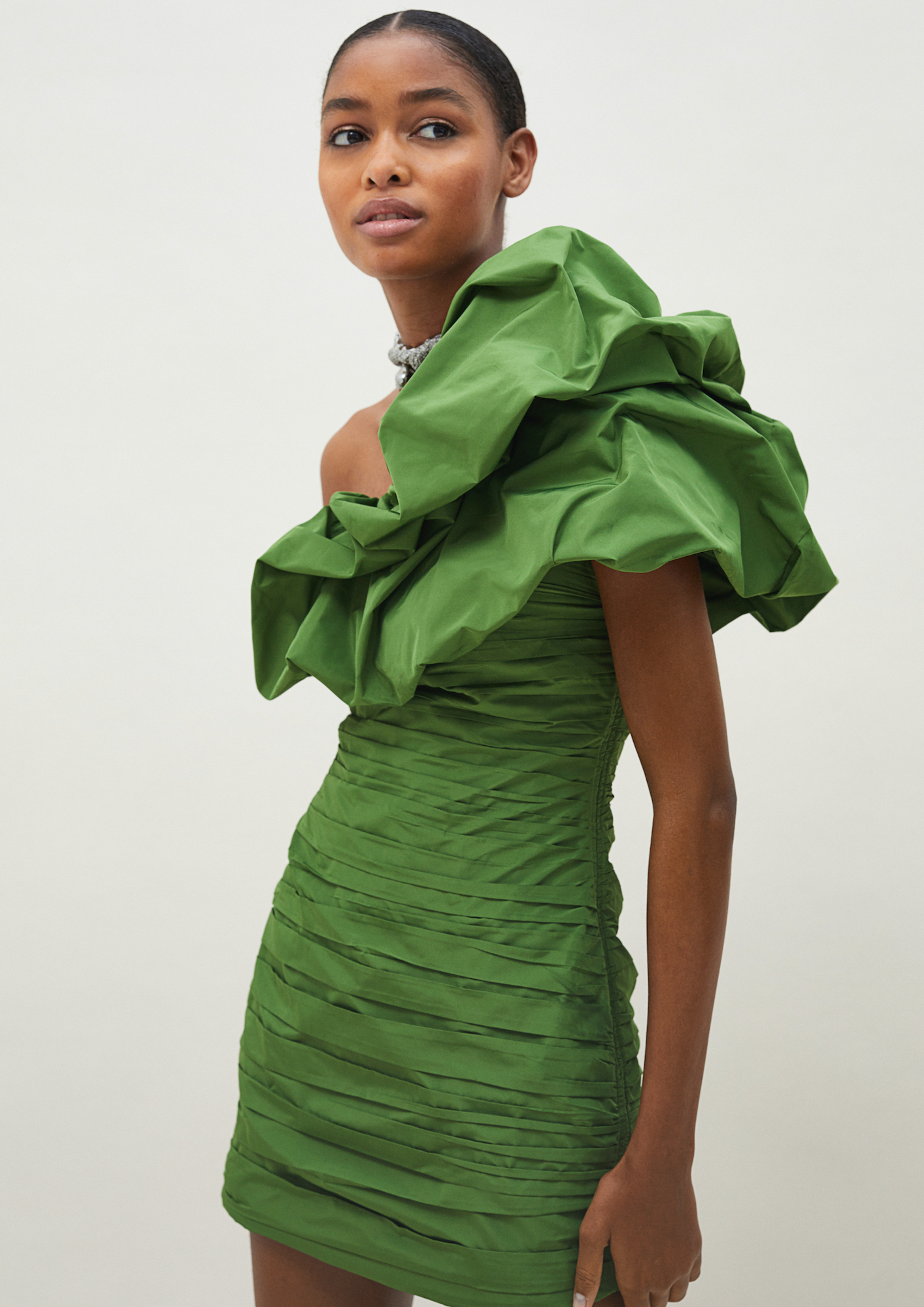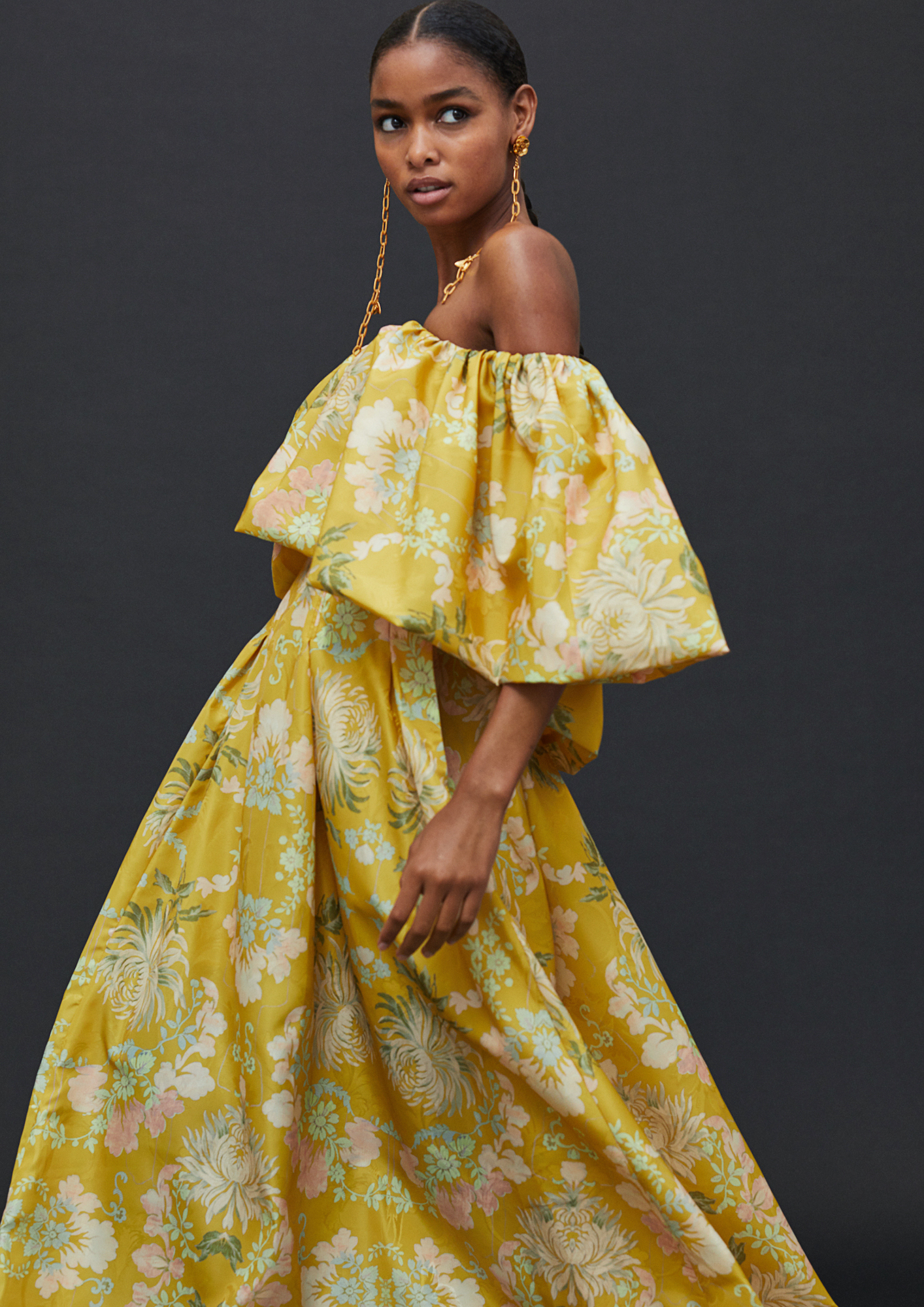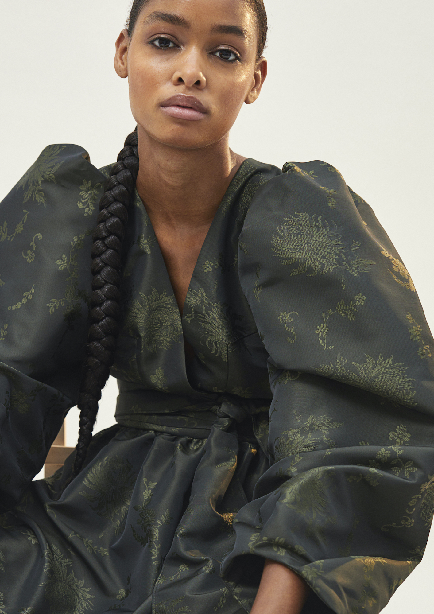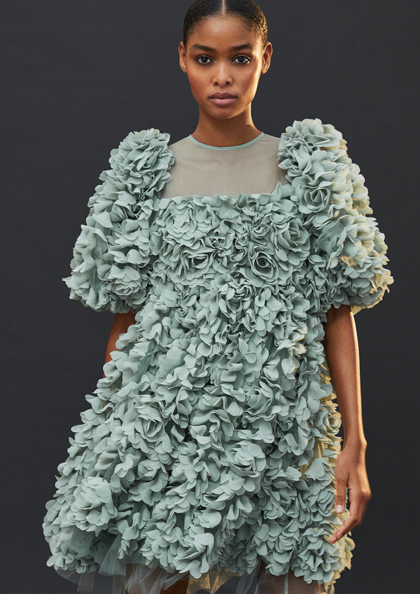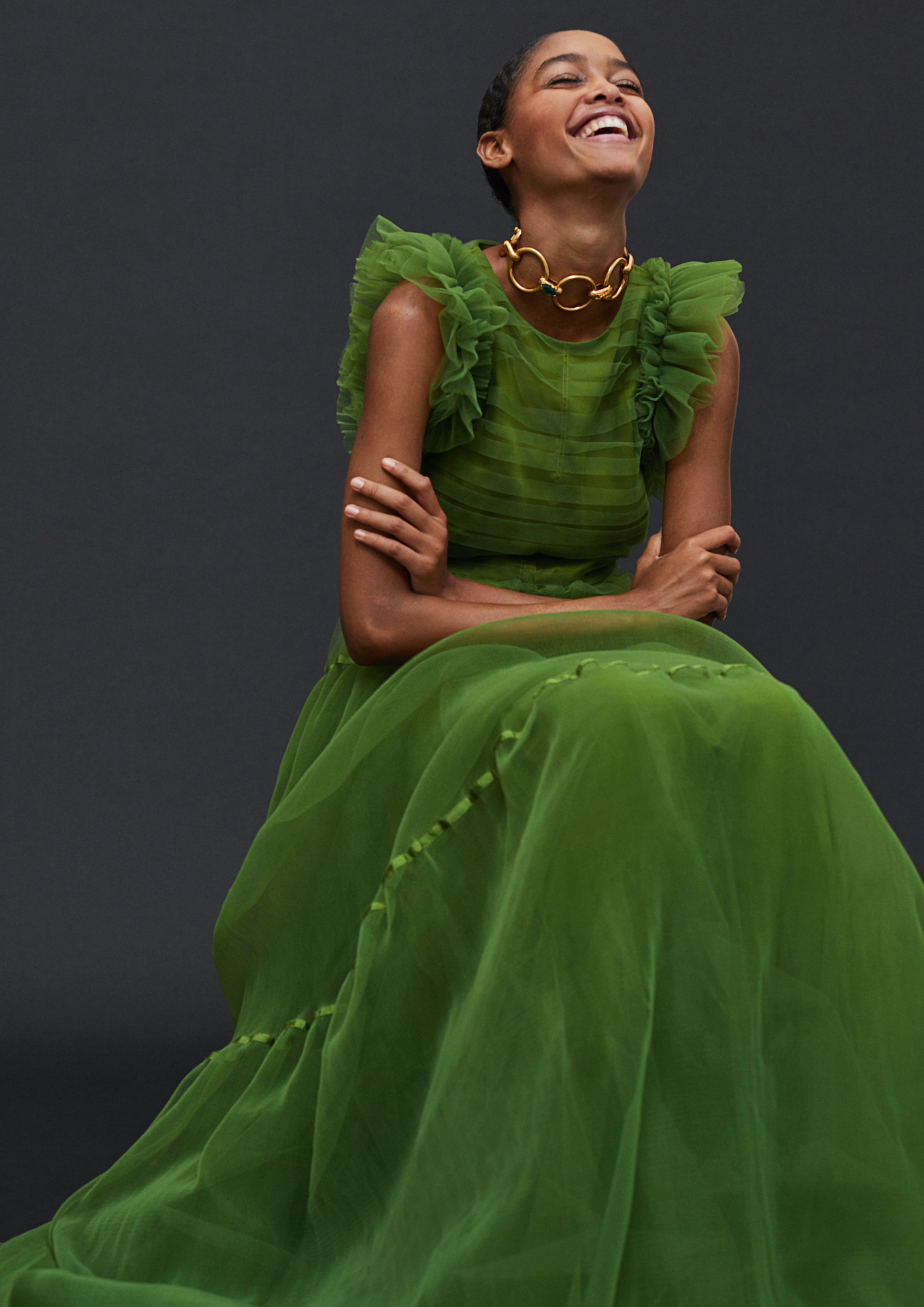 Die neueste H&M Conscious Exclusive Kollektion präsentiert sich opulent, setzt auf extravagante Rüschen, verträumte Prints und zarte Volants. Neben voluminösen Oberteilen beinhaltet die Linie Abendkleider, Zweiteiler sowie Minikleider, die mal in leuchtenden, mal in gedeckten Nuancen daherkommen. Hergestellt wurden die Stücke aus Materialien und Prozessen, die Lebensmittelreste in nachhaltige Materialien umwandeln, sowie Stoffe, die aus nachhaltig gewonnener Zellulose gefertigt sind. Abgerundet wird die Kollektion durch Accessoires wie groben Gliederketten, Ohrringen und Kettchen für Schuhe aus recycelten Metallen sowie einer Sonnenbrille, die aus dem neuen Material „Made of Air“, das zum Teil aus Biomassenabfällen entsteht, gefertigt wurde. In dieser Saison wird es zudem ausgewählte Kleidungsstücke für Männer geben — die Kollektion ist ab dem 1. Dezember bei H&M erhältlich. Die Kampagnenbilder könnt ihr euch für einen ersten Vorgeschmack hier anschauen: