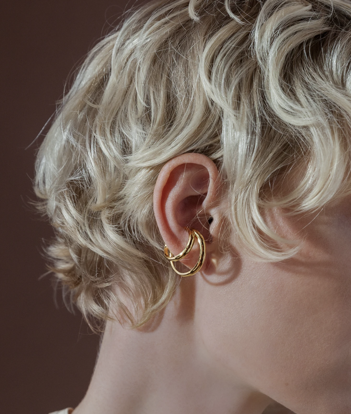 Meine ersten Schmuckstücke waren zwei hauchdünne, goldfarbene Kreolen mit kleinen Herzchenanhängern. Ich bekam sie einst von meiner Patentante und war so jung, dass ich es vermutlich nicht einmal wirklich realisierte. Tragen konnte ich sie nie, weil meine Ohren jegliche Fremdkörper mit sofortiger Wirkung abstoßen, was auch heute noch der Grund dafür ist, dass ich Ohrringe meist bloß aus der Ferne, dafür aber nicht minder sehnsüchtig bestaune. Ganz oben auf meiner Wunschliste: Ottolingers Zauberwerk an Ohrringen, das mich ein wenig an ölige Urzeit-Kreaturen erinnert und — hoffentlich — irgendwann auch als Clips erhältlich sein wird. Dann nämlich werde ich sie mir zum Geburtstag schenken, einfach so, weil es in meinen Augen fast keine besseren Geschenke, die man sich selbst machen kann, gibt.
