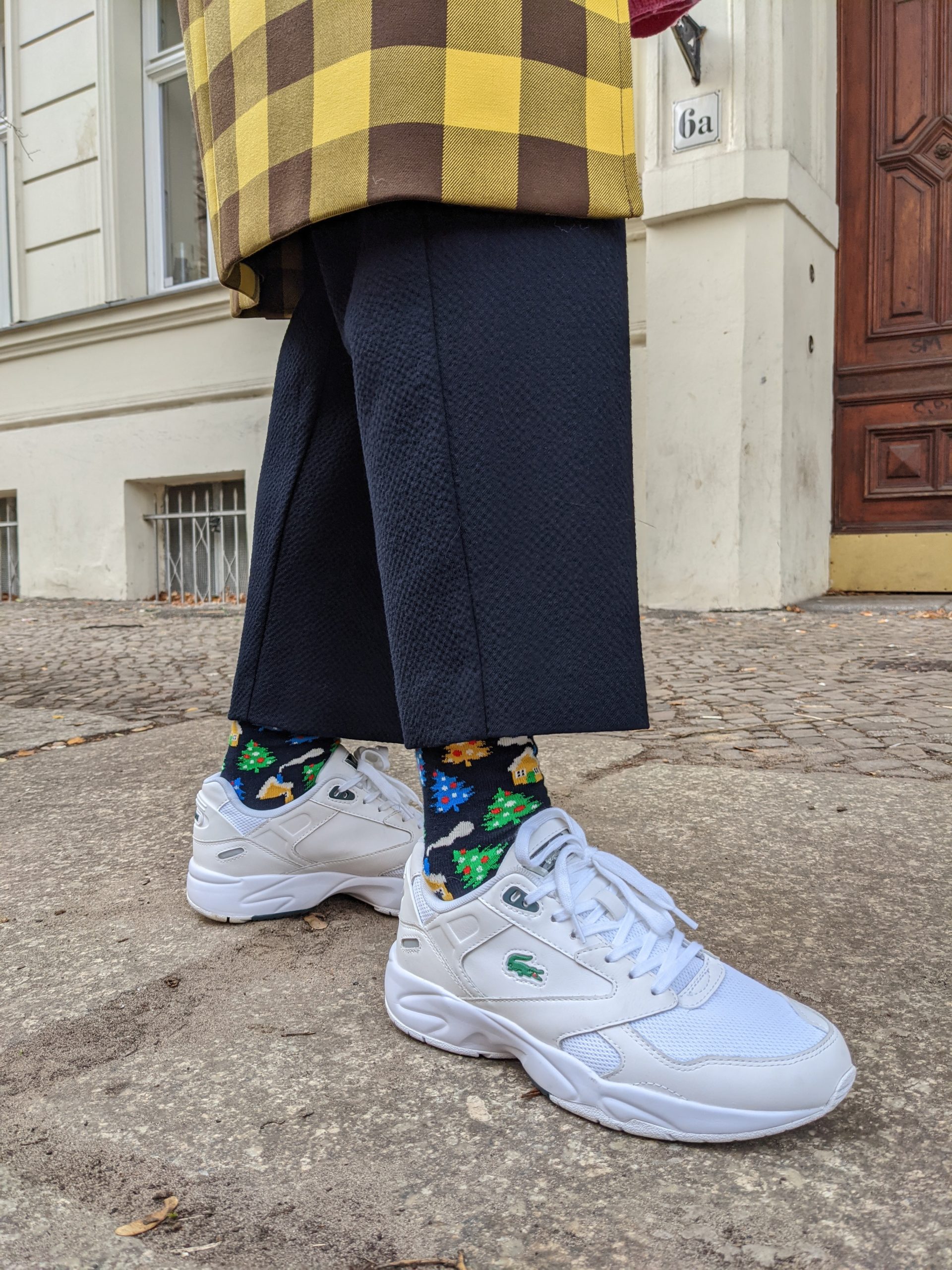 Kann ich noch auf High Heels laufen? Nein. Trotzdem mal wieder daheim ausgeführt: Meine Gucci Platforms. Dazu: Rollkragen: Arket, Pullunder: Baum & Pferdgarten, Herzchen-Strumpfhose: Esprit, Samtrock: Second Hand