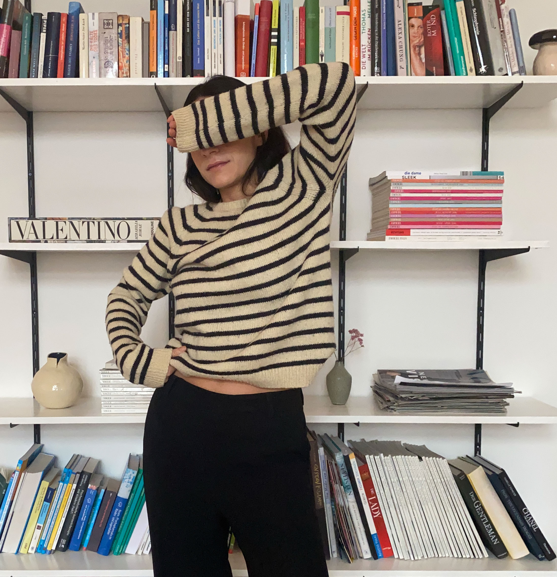 Pullover: Marc O’Polo, Steghose: Baum & Pferdgarten, Schuhe: Aeyde