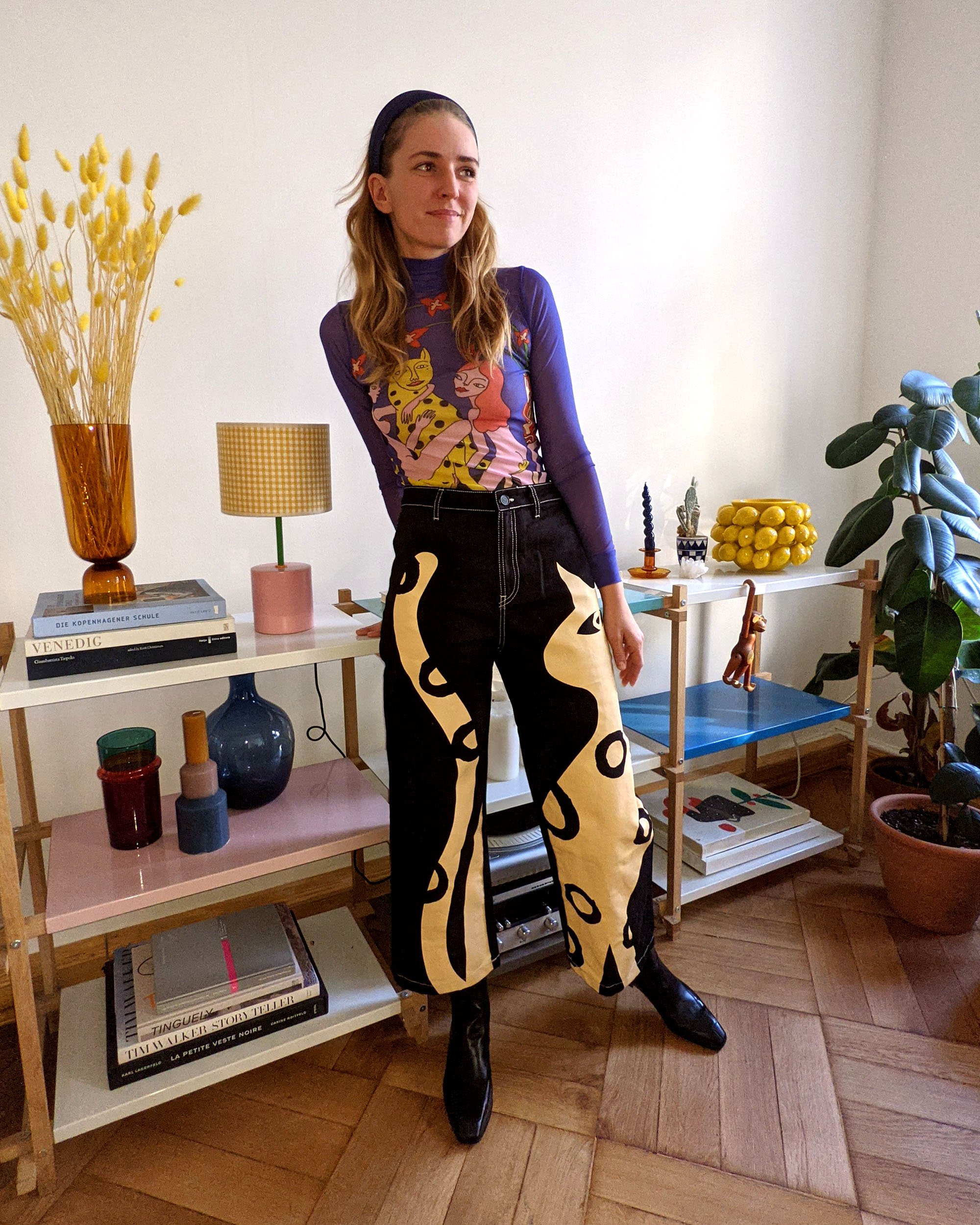 Shirt & Jeans: Desigual x Miranda Makaroff*, Schuhe: Aeyde, Haarreifen: KdG x Jane Wayne