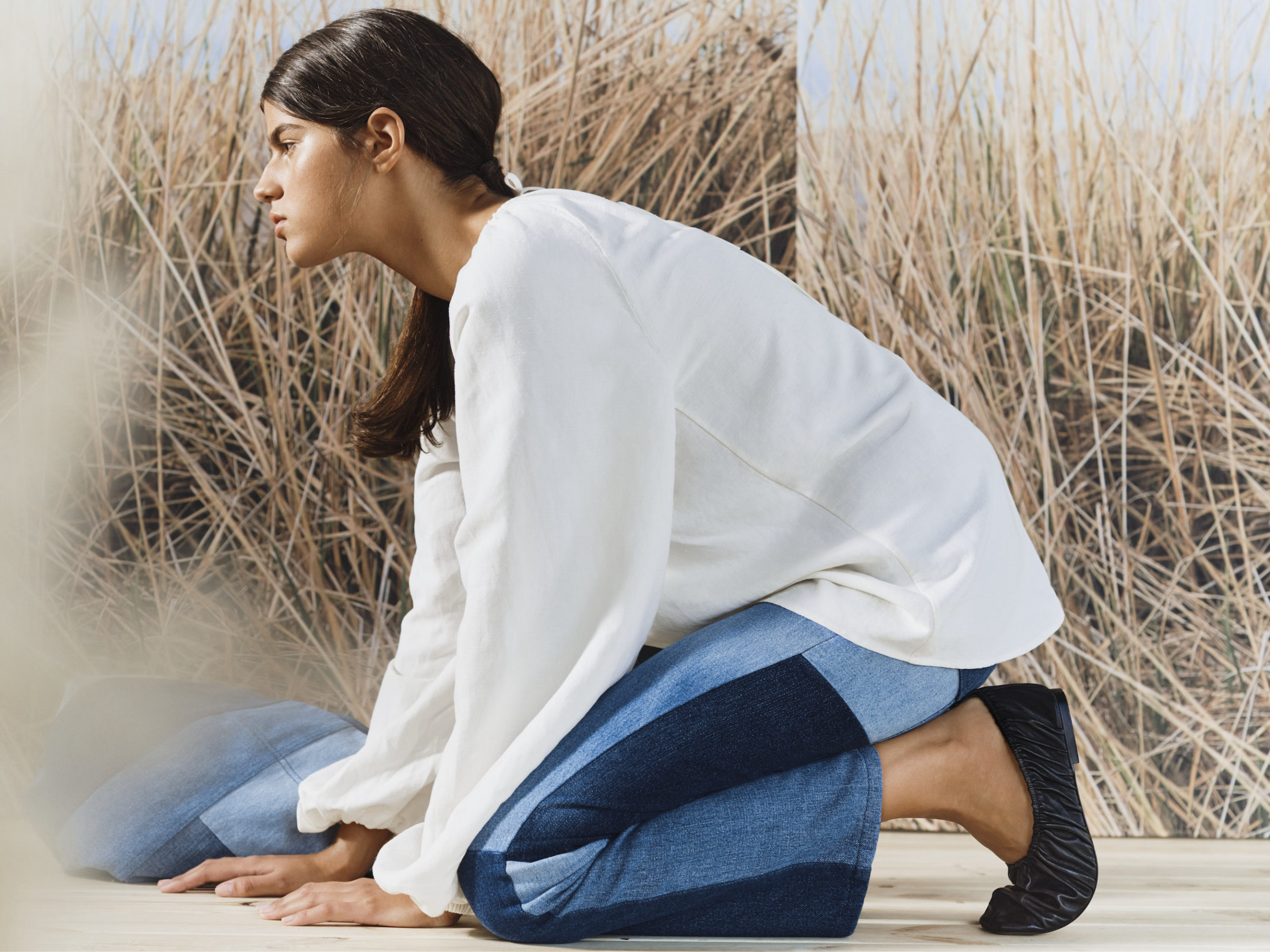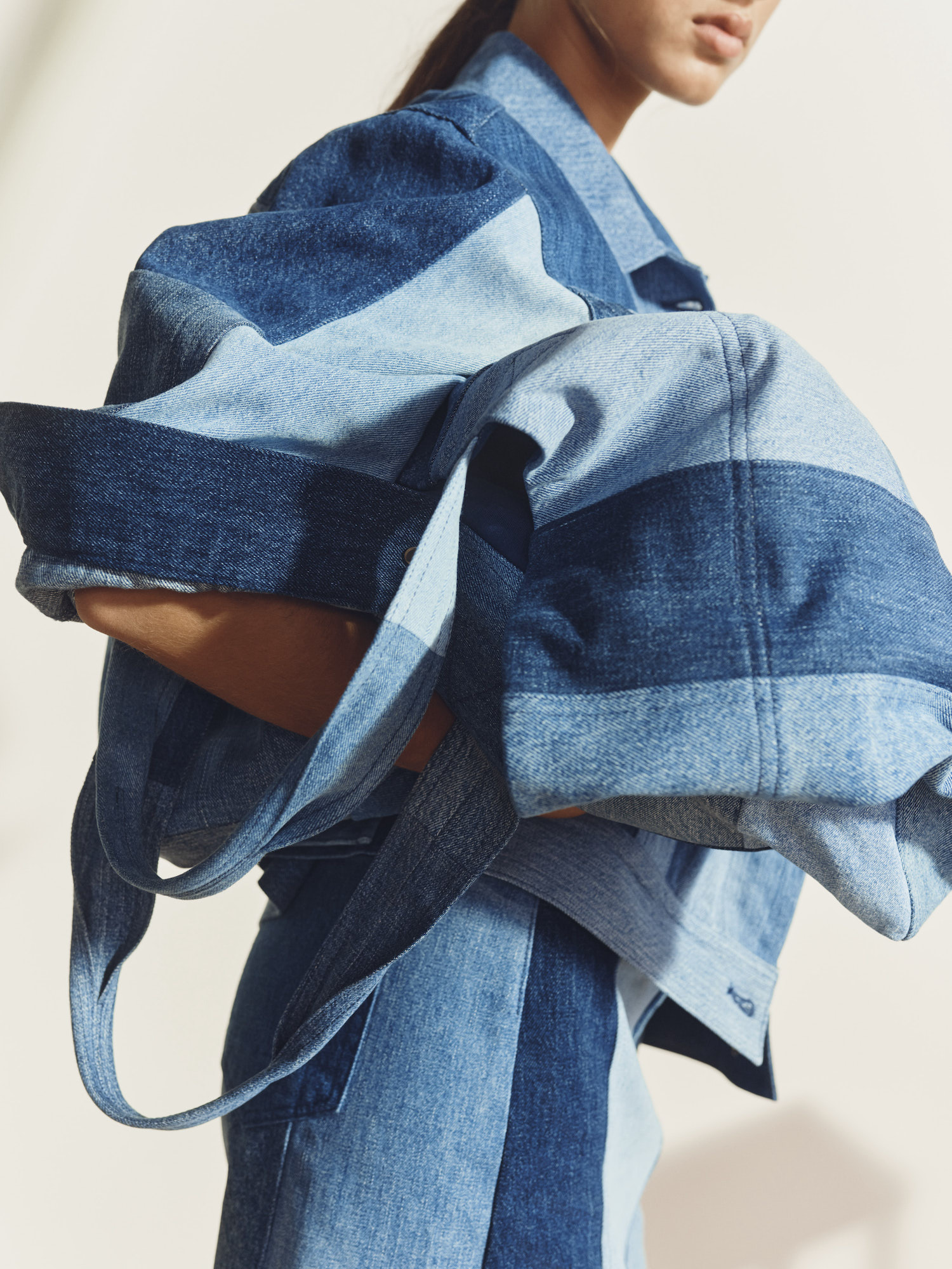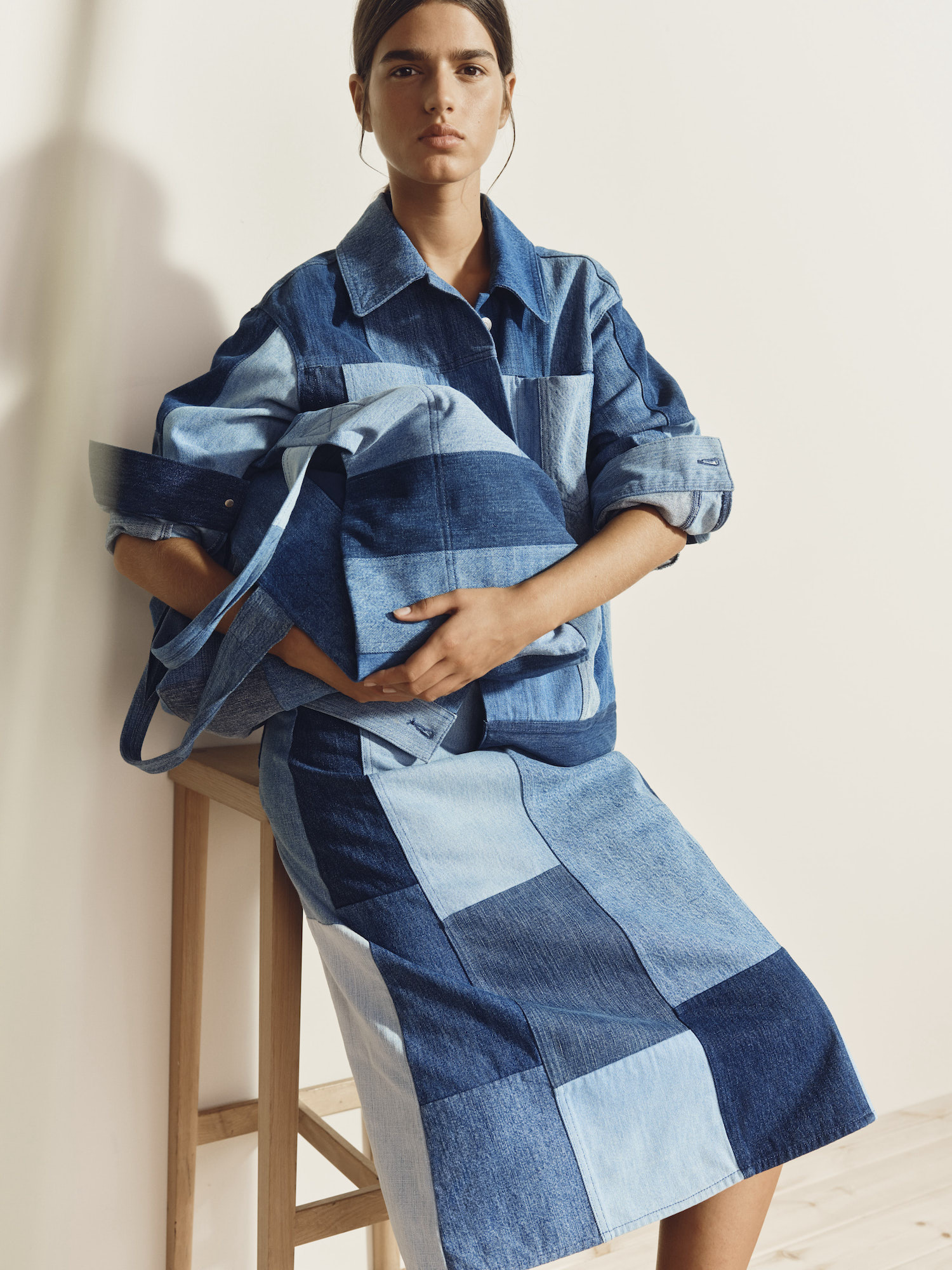 Inspiriert von abgetragenen Jeans, die repariert und geflickt werden, um ihre Lebensdauer zu verlängern, lanciert Arket Anfang Februar eine nachhaltigere Circular Denim Kollektion im Patchwork-Stil: Für die Herstellung werden gebrauchte Denimstoffe, die aus dem eigenen Reyclingprogramm von Arket mit I:Collect stammen, verwendet. So wird jedes gesammelte Secondhand-Kleidungsstück gewaschen und sortiert, in Flicken geschnitten und anschließend zusammengenäht. Das Ergebnis sind breite Stoffbahnen mit unregelmäßigem Denim-Muster, die letztlich anstelle von normalen Stoffrollen verwendet werden, um nicht zuletzt den Verzicht auf den ressourcenintensiven Herstellungsprozess von neuem Denimstoff voranzutreiben. Die gesamte Kollektion ist ab Anfang Februar bei Arket erhältlich, einen ersten Einblick in das Lookbook könnt ihr euch bereits bei uns verschaffen: