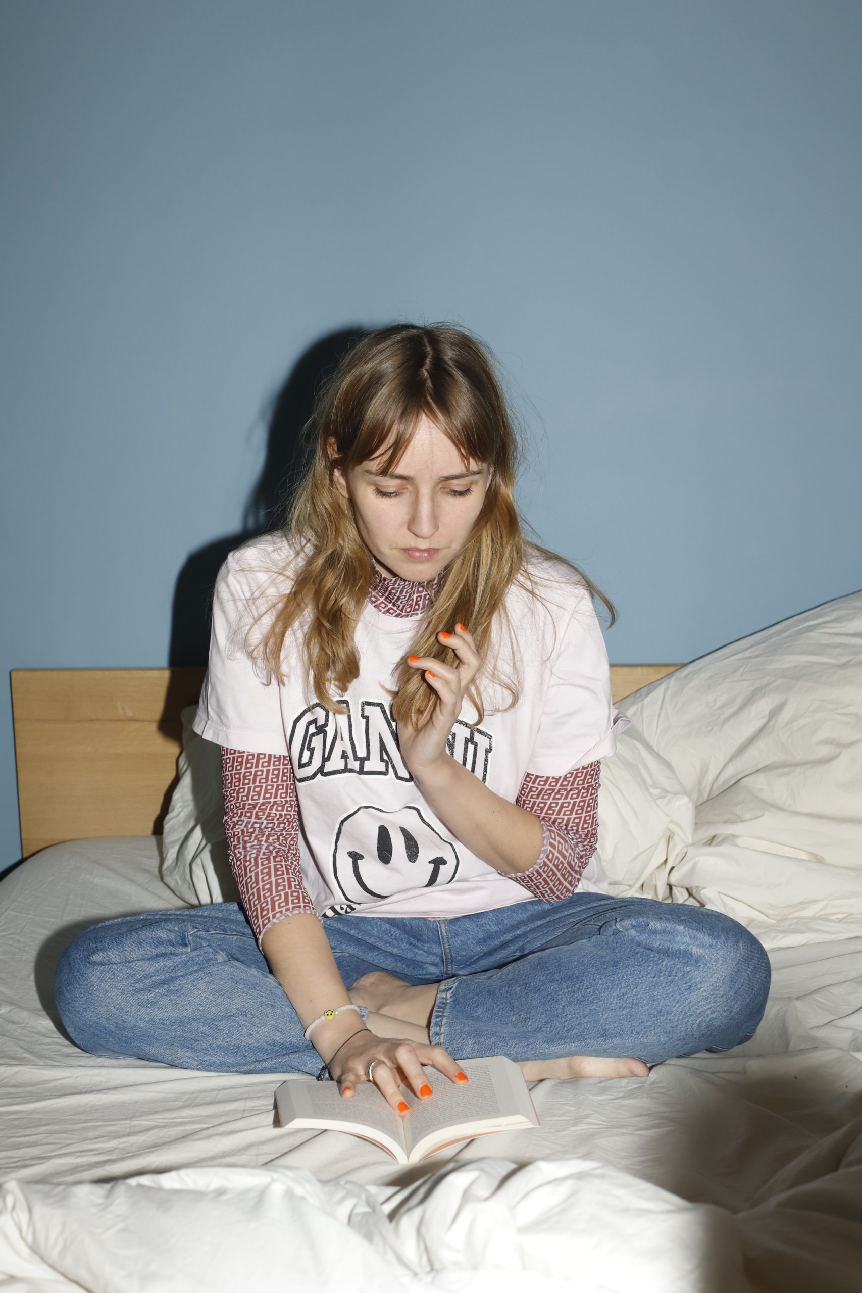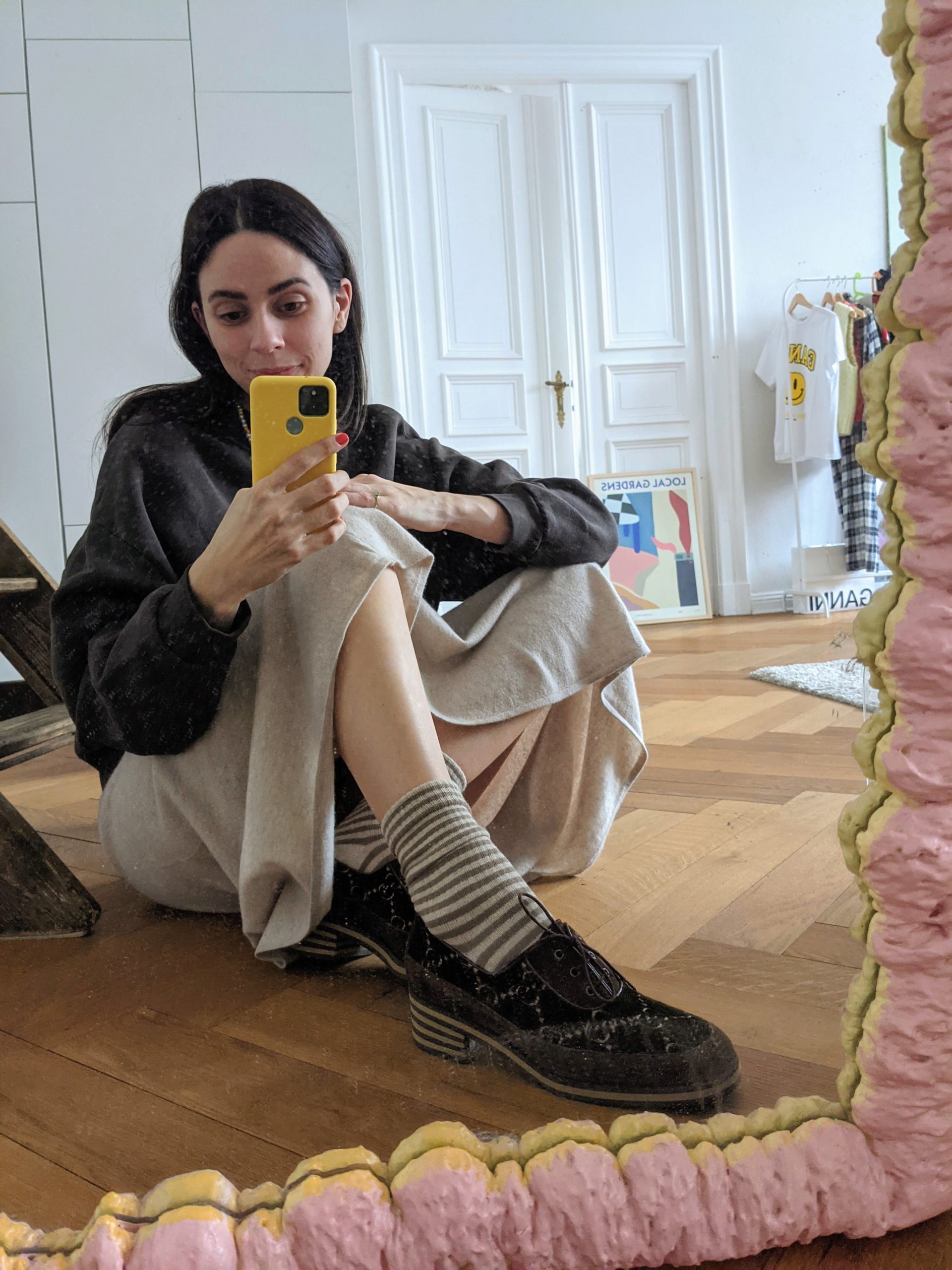 In den vergangenen Tagen aß ich zum ersten Mal Seetangsnacks (Korean BBQ Flavour), kaufte Sticker beim Kiosk um die Ecke und tanzte zu Talking Heads’ „Burning Down the House“. Ich schaute mir einige Couture Schauen an, holte in der Mittagspause zum ersten Mal wieder eine Sonnenbrille aus der Schublade, um mein Gesicht in die spärlichen Sonnenstrahlen zu halten und staubte meine analoge Kamera ab. Ich benutzte Pomade, um mein fliegendes Haar zu bändigen, trank Sekt mit gefrorenen Himbeeren und sang an meinem Geburtstag mit betrunkenem Kopf „Wish You Were Here“, während ich auf der Gitarre meines Freundes klimperte und merkwürdigerweise zufrieden war. Mittlerweile fühle ich mich wie auf einem Langstreckenflug, bei dem einem eben nichts anderes übrig bleibt, als rumzusitzen, abzuwarten und zu hoffen, dass man heil ankommt — vor einigen Wochen habe ich beschlossen, mich all dem hinzugeben, ganz ohne Aufregung. Meine Psyche dankt es mir.