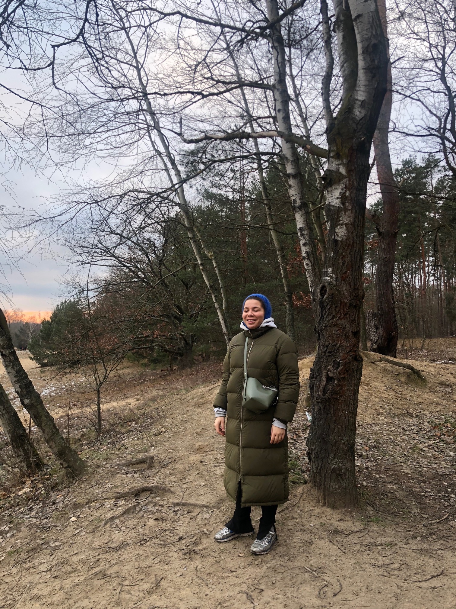 Mantel: Arket Tasche: Rebecca Minkhoff (alt) Schuhe: Nike (Second Hand) Balaclava: Selbstgemacht