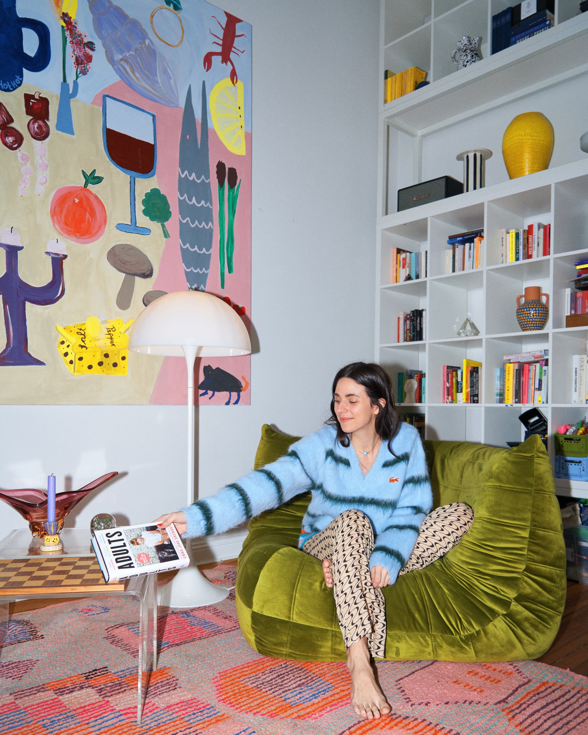 Ich beömmel mich gerade jedenfalls auch sehr oft, über meine lustigen Freunde am Telefon (Zoom-Pause), die beim Fluchen richtig gute Laune bekommen, über meine Oma, die bei Facetime-Anrufen dauernd nur ihr Kinn filmt, über den Mann, der jeden Tag durch die Küche tanzt und sich das Knie anstößt und über mich selbst. Neulich habe ich vor lauter Stumpfsinn wieder versucht, an meinem Ellenbogen zu lecken. Na ja. Auch gut: Adults. Leichte, aber brillante Kost für Leute, deren pandemisches Breihirn nach Erholung schreit.