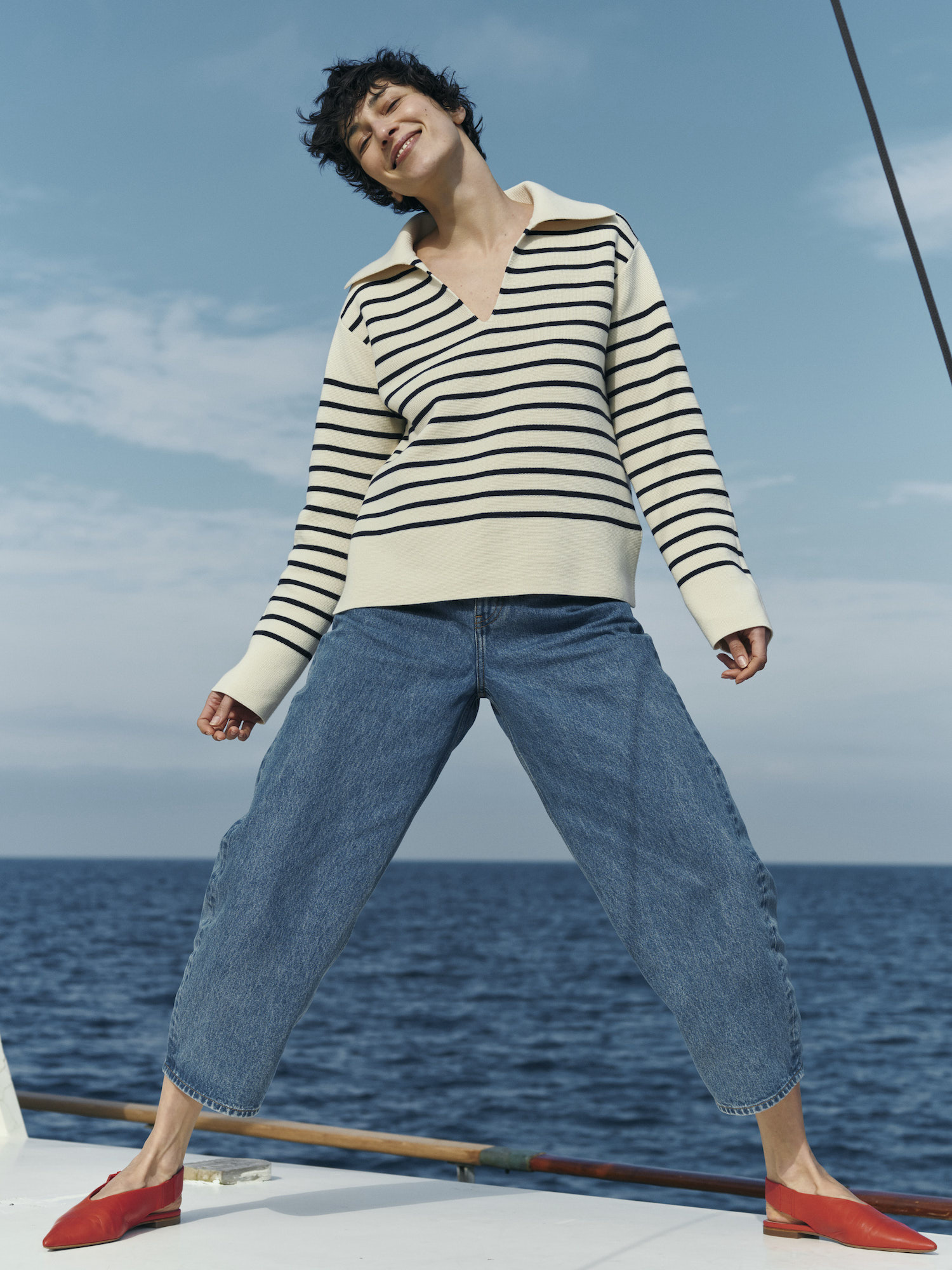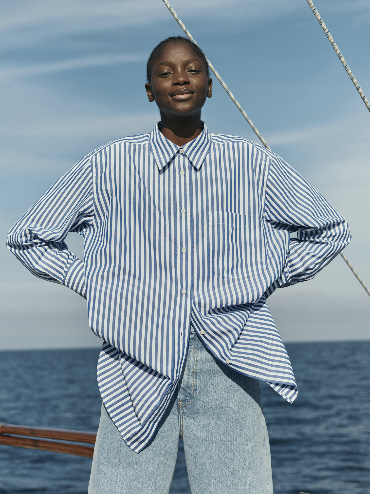 Zum anderen dreht sich im neuesten Drop der Hauptkollektion des diesjährigen Frühjahrs und Sommers alles um das Thema „Modern Marinière“. Heißt: Arket kehrt zu seinen Anfängen zurück, greift die ikonischen Breton-Streifen-Looks auf und interpretiert diese neu. Neben Trenchcoats in spannenden Schnitten umfasst die Kollektion klassische Denim-Looks, gestreifte Tops und Shirts sowie Anoraks aus technischem Nylon. Den gesamten Drop findet ihr bei Arket, einen ersten Einblick in die Kampagnenbilder gibt es bereits bei uns.