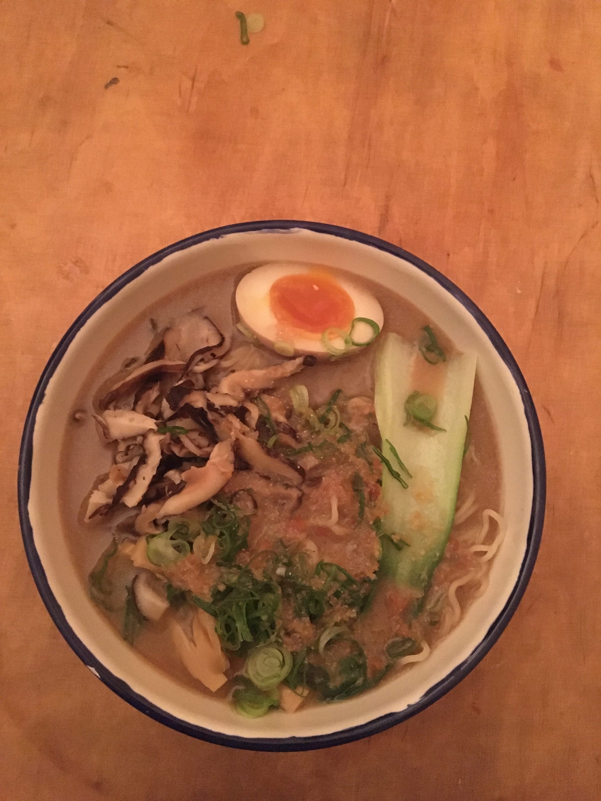 Nach dem Mittag kommt der Pieks. Noch fühle ich mich tiptop. Ich komme nach Hause und spotte wieder die Tauben im Hof, ganz nah zusammen – seit 2013 wohne ich in dem Haus und beobachte jedes Jahr, wie das Taubenpärchen (sind es immer dieselben?!) ein Nest baut und Nachwuchs hochzieht. Vom Anblick bin ich maximal gerührt – ich ahne ein bevorstehendes PMS. Abends bestellen wir uns Ramen, hier zahle ich anteilig 16,00 Euro.