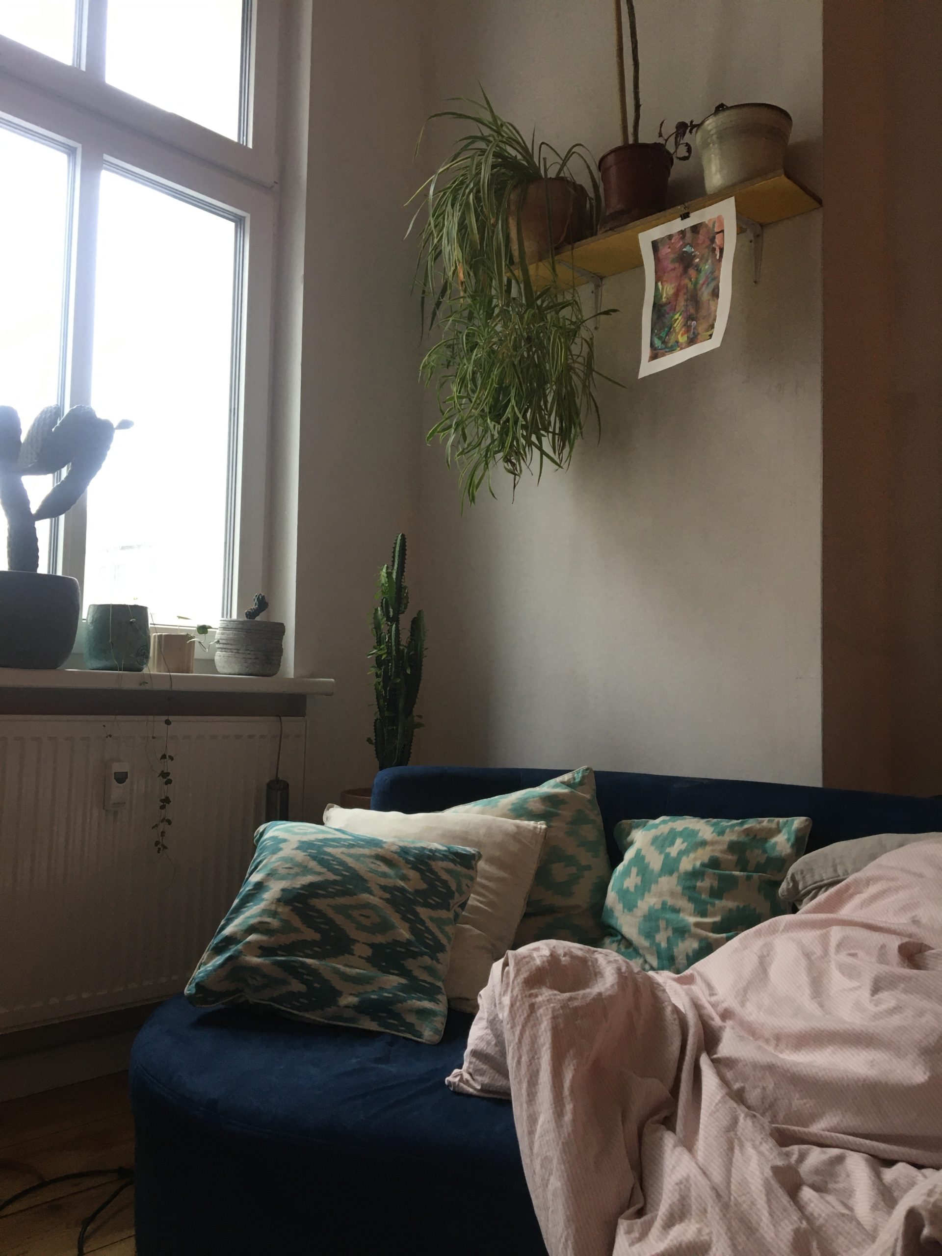 Aktuell wohne ich gemeinsam mit meinem Mann in einer riesengroßen 3-Zimmer-Wohnung. Aufgrund des Berliner Mietendeckels zahlen wir für 100 qm² nur 1.000,00 statt 1.450,00 Euro.