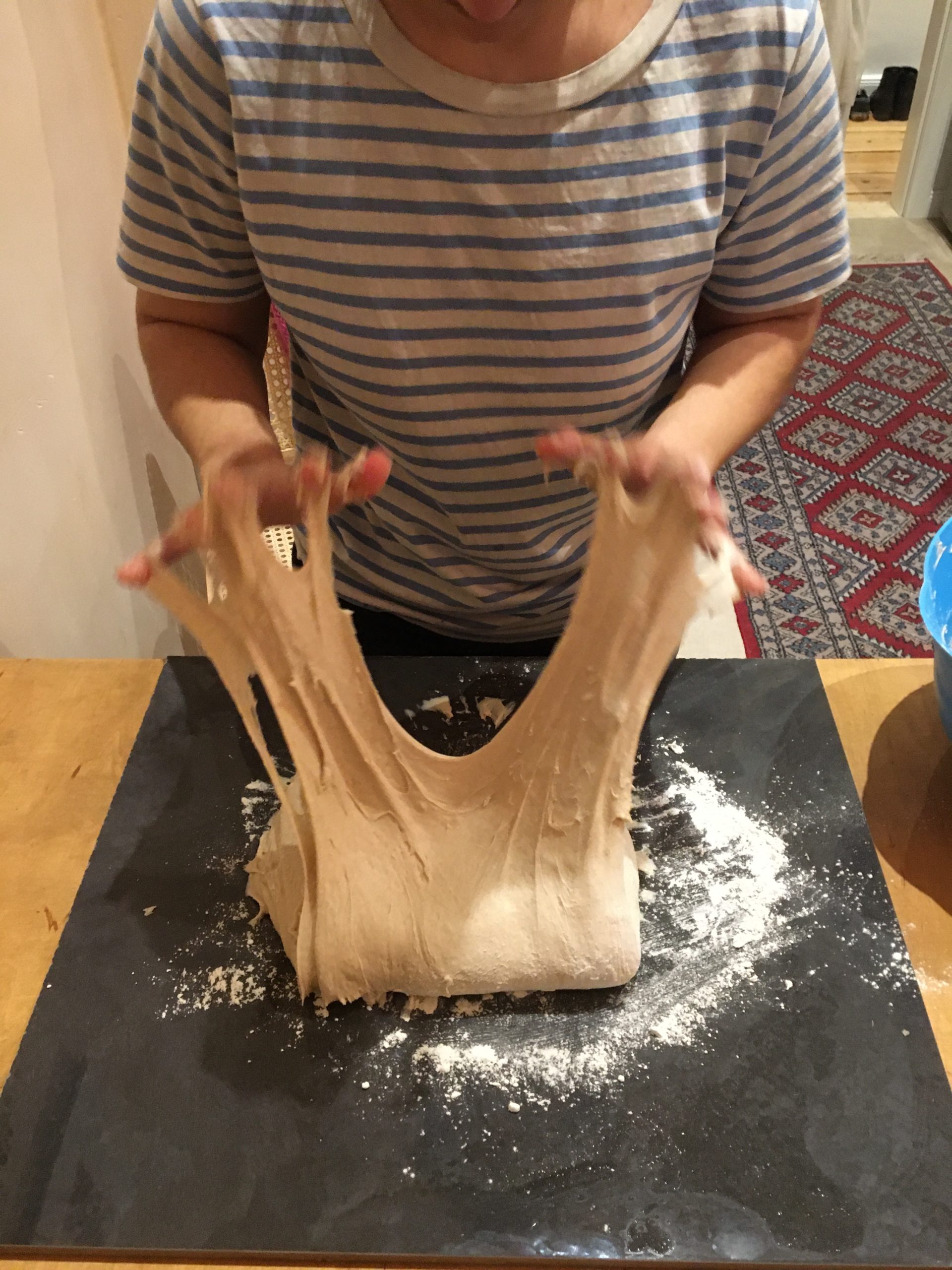 Ich liebe es, Samstags nach dem Aufwachen einfach liegen zu bleiben und Kaffee im Bett zu trinken und Löcher in die Luft zu starren. Morgens bin ich schon megaaufgeregt, weil wir für den Abend ein besonderes Essen bestellt haben. Ungefähr einmal monatlich gebe ich ca. über 60,00 Euro für ein Dinner zu zweit aus. Wir holen die Essenskiste im Laden ab. Auf dem Weg hole ich noch schnell ein Gruppenabschiedsgeschenk für unsere fleißige Studentin auf Station – eeewig lange haben wir angestanden, dann nehme ich aber auch noch einen Genmaicha-Tee für mich mit. 4,00 Euro plus anteilig 10,00 Euro für das Geschenk. Zum Essen passt doch sicherlich noch ein guter Wein, oder? Gabs aber gestern schon, deshalb gibts heute nur die 375ml-Flasche für 5,80 Euro. Zu Hause angekommen, backe ich erst mal Brot. Es ist unglaublich befriedigend, Dinge mit der Hand zu machen und direkt Ergebnisse zu sehen.
