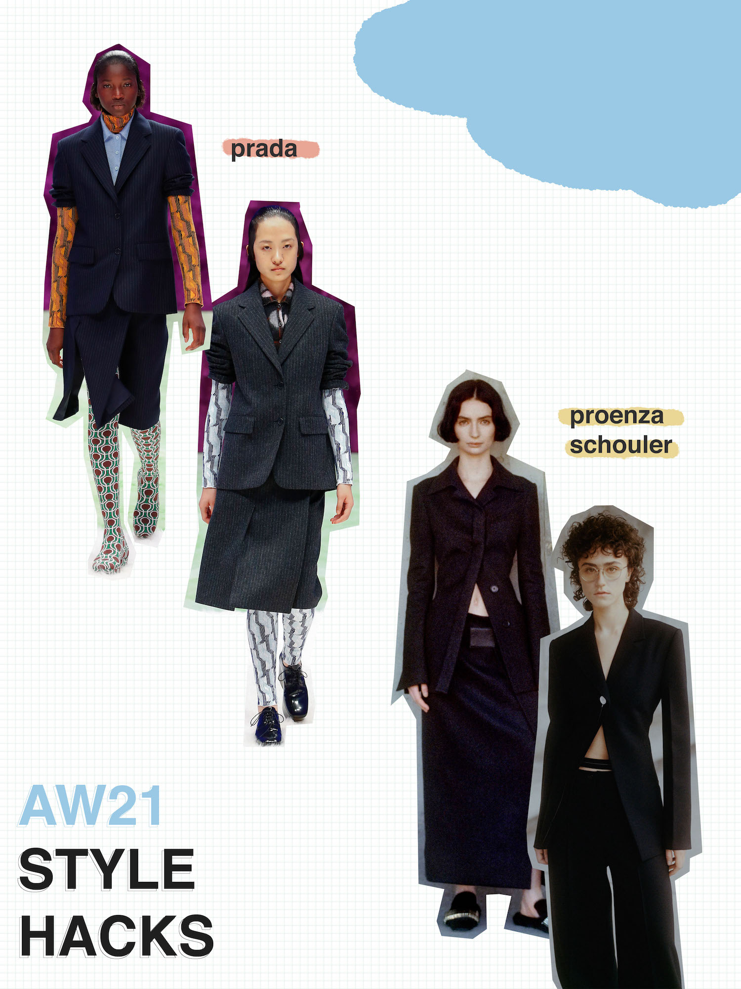 Zwei sehr einfache und dennoch effektive Stylings, die wir uns bereits jetzt abschauen können, zeigten Prada und Proenza Schouler: Während Letztere bloß den obersten Knopf von Cardigans, Blusen und Hemden schlossen (wahrlich keine neue Vorgehensweise, aber dennoch nicht zu missachten), krempelten Miuccia Prada und Raf Simons die Ärmel aller Blazer kurzum hoch. Zu sehen war dieses Styling bereits in der Menswear-Kollektion, die im vergangenen Januar präsentiert wurde, in diesem Artikel habe ich außerdem einen Tipp, der dafür sorgt, dass die Ärmel auch wirklich oben bleiben, mit euch geteilt.