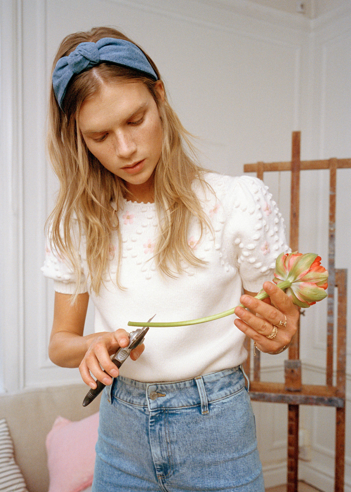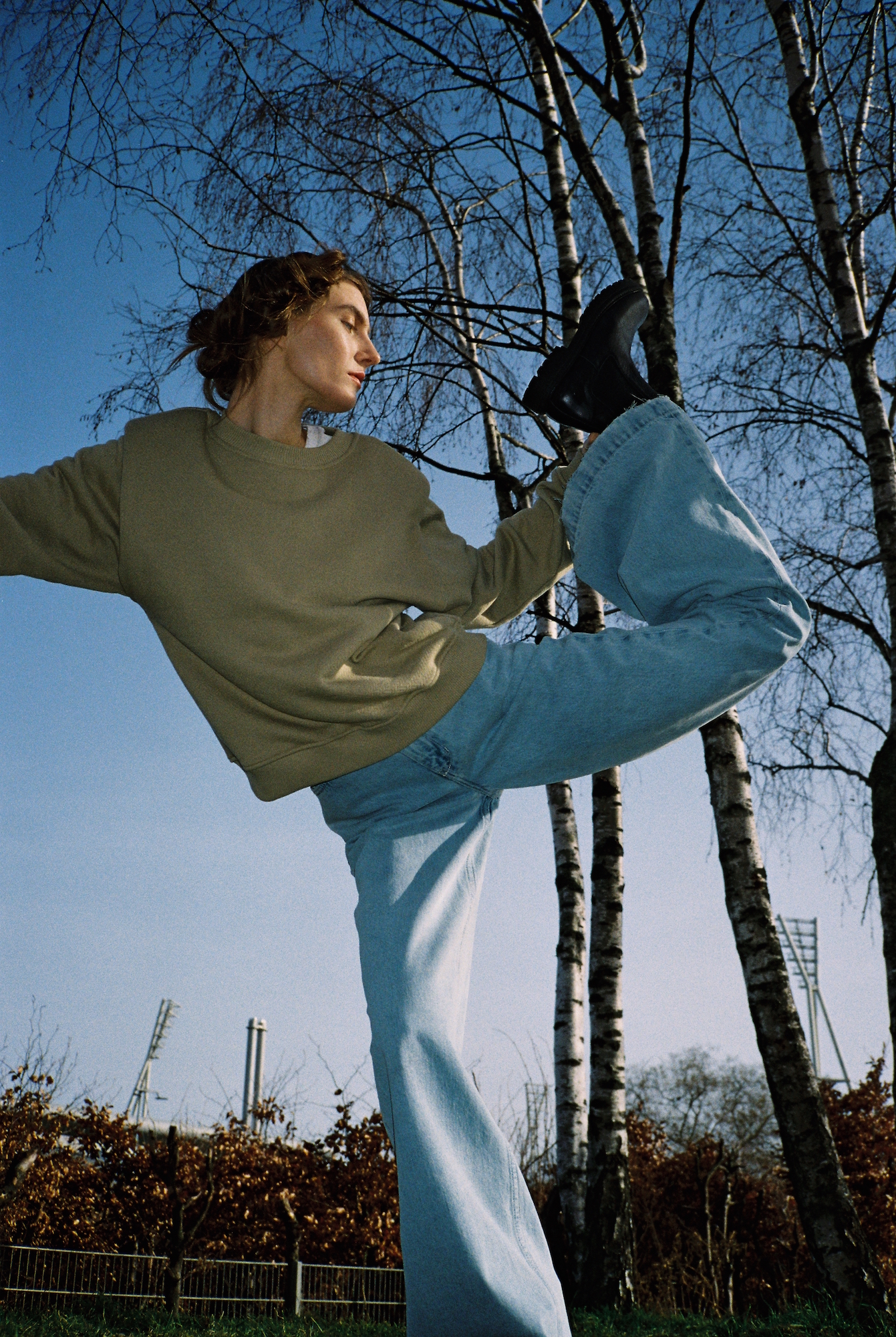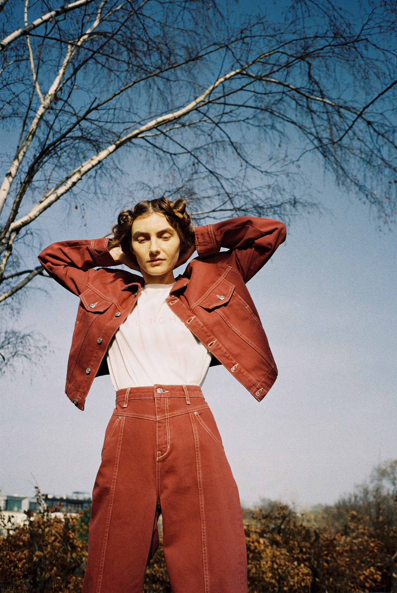 Dass Denim trotz seiner Schwere durchaus auch zart und leicht daherkommen kann, beweisen die Fotos des „Re-Thinking Denim“-Editorials von Blanche. Die Fotos, die von Fotografin und Kreativdirektorin Miriam Marlene Waldner in einer verträumten Landhaus-Idylle aufgenommen wurden, setzen die farbigen Designs aus „Green Denim“ gemeinsam mit Model und Schauspielerin Sophie Bodgan in Szene. Das Besondere: Es handelt sich nicht nur um Bio-Baumwolle, auch die gesamte Produktion beinhaltet faire Arbeitsbedingungen, kurze Transportwege, Wasser-Wiederaufarbeitungsanlagen sowie eine strenge Dokumentation von abgeleitetem Wasser. Auch werden teils Naturfärbemittel und Laser Print eingesetzt, um eine Acid-Waschung ganz ohne die namensgebende Säure zu erzielen. Alle Denim-Styles findet ihr bei Blanche, zur Inspiration könnt ihr euch die wundervollen Bilder bereits bei uns anschauen: