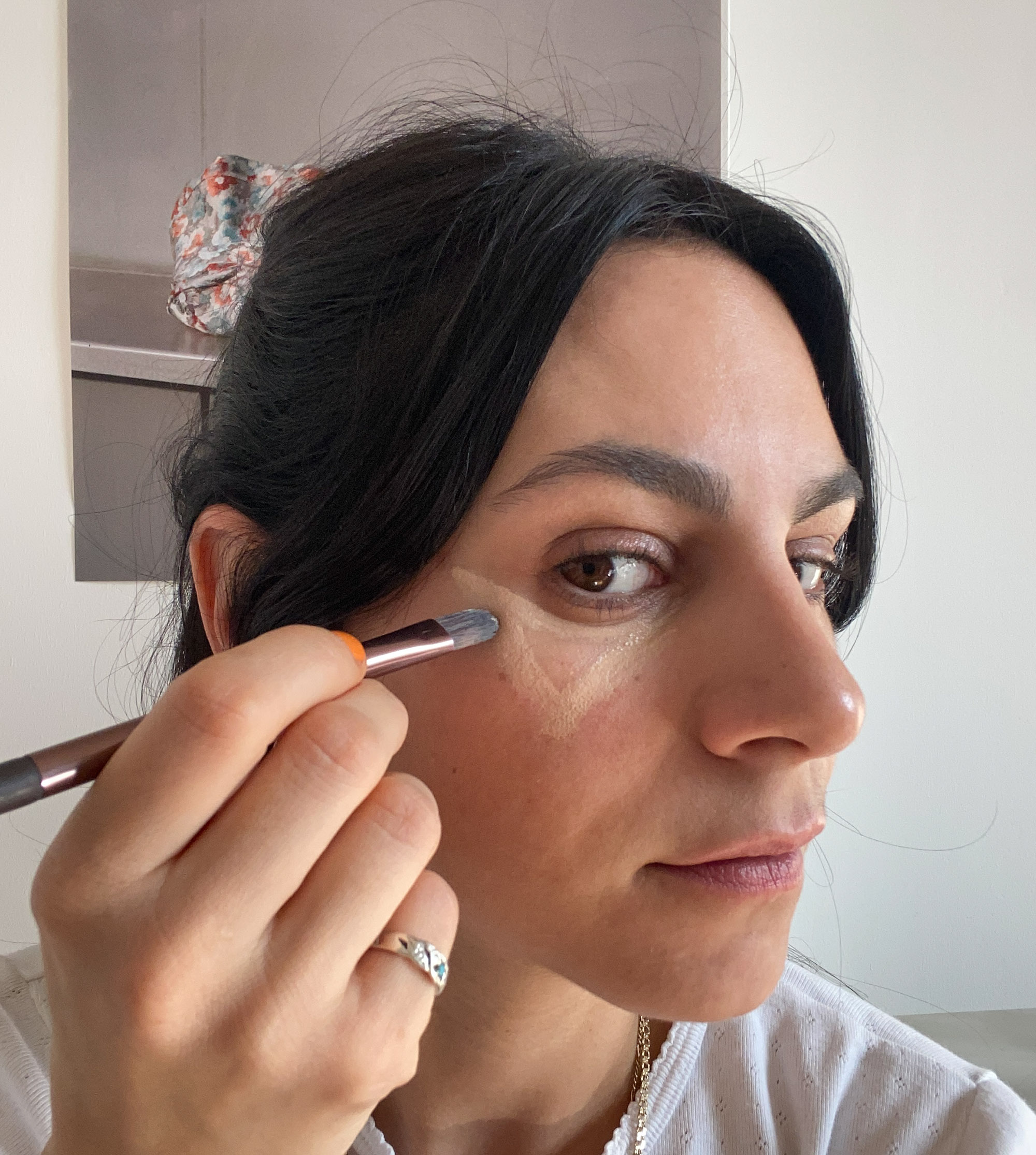 „Weniger ist mehr“ lautet mein Motto bei Make-up. Ich halte es gerne natürlich und versuche mein Gesicht zu optimieren, weniger es zu verändern. Deswegen bin auch kein großer Fan von sehr deckender Foundation und achte mit Habichtaugen darauf, den richten Hautton zu treffen. So war ich auch immer sehr sparsam, wenn es darum ging, Concealer aufzutragen und habe nur kleine Pünktchen am unteren Augenrand aufgetragen, um diese dann zu verblenden. Ein Make-up Artist demonstrierte mir dann den Unterschied, was passiert, wenn man den Concealer nicht ganz so sparsam und in dreieckiger Form unter dem Auge aufträgt und anschließend verblendet − ich glaube, es hat etwas mit dem Licht zu tun und wie dieses auf unser Gesicht fällt. Bei dieser Variante wird das gesamte Auge erhellt und das Ergebnis ist ein natürlich heller und wacher Blick.