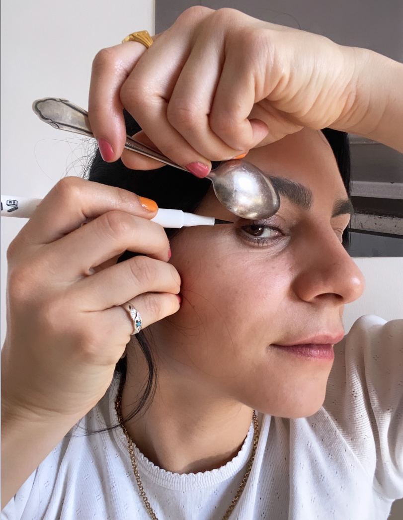 3. Eyeliner mithilfe eines Teelöffels zeichnen