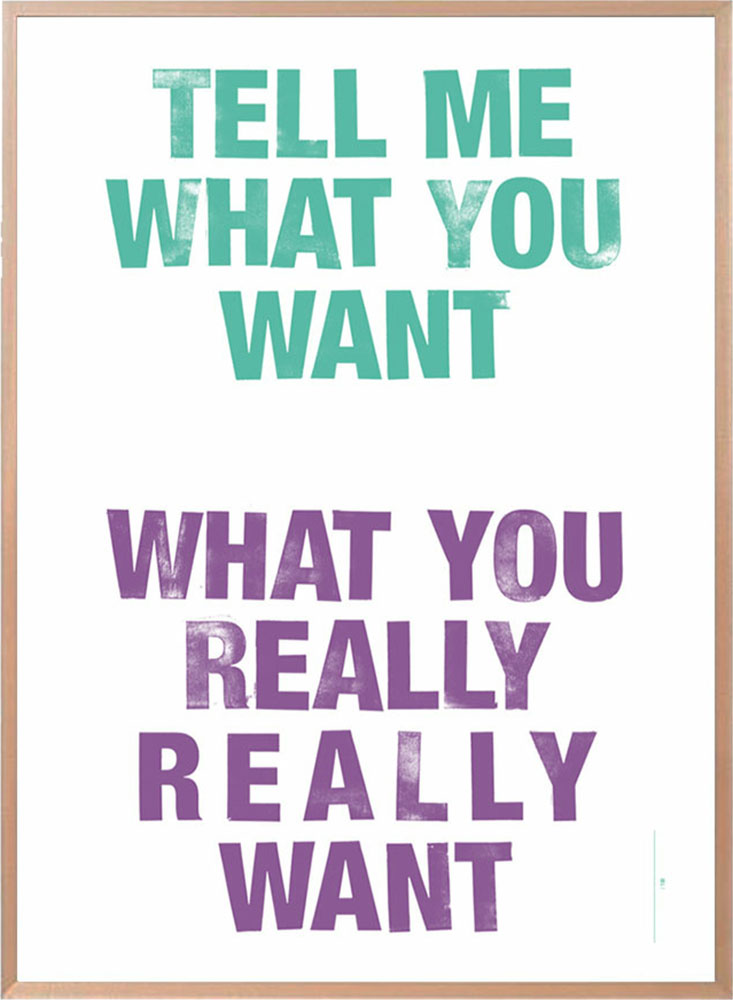 „Tell Me What You Want. What You Really Really Want“ lautet die Aufforderung, die der Siebdruck des Künstlers Eike König trägt. Entstanden ist der auf 100 Stück limitierte Kunstdruck in Zusammenarbeit mit Minimarkt und ist in zwei unterschiedlichen Farbkombinationen erhältlich. Jeder Druck wird von Eike König signiert und nummeriert, einen passenden Rahmen aus Eichenholz gibt es außerdem im Minimarkt Ladengeschäft zu kaufen. Online könnt ihr die Drucke bereits jetzt vorbestellen.