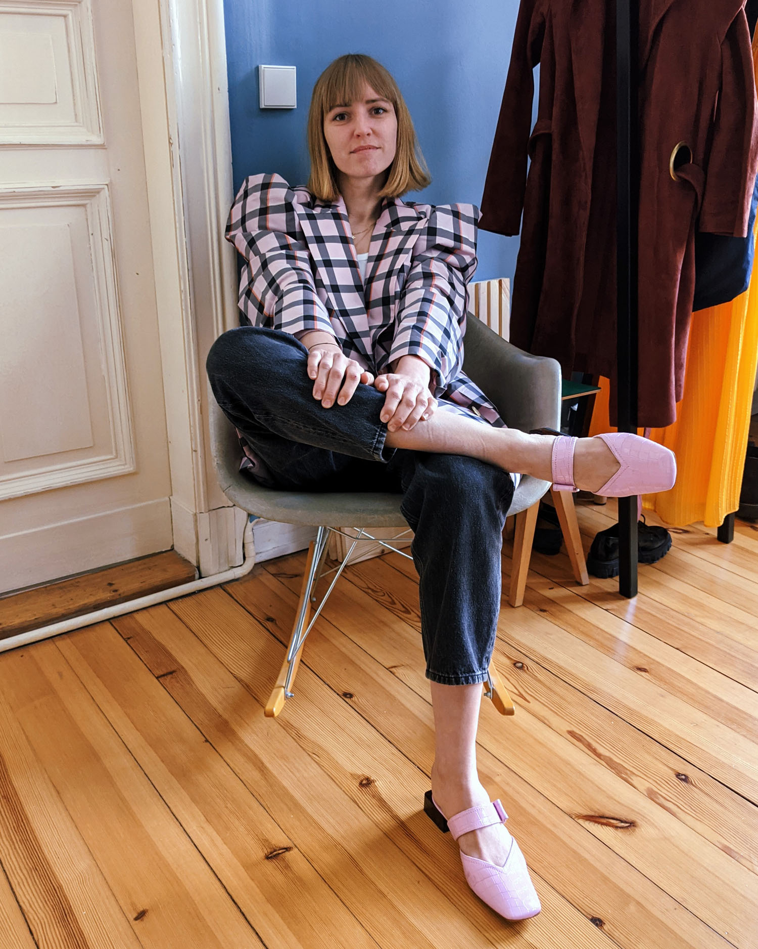 Blazer: Brøgger x & Other Stories, Jeans: ARMEDANGELS, Schuhe: Ganni Second Hand
