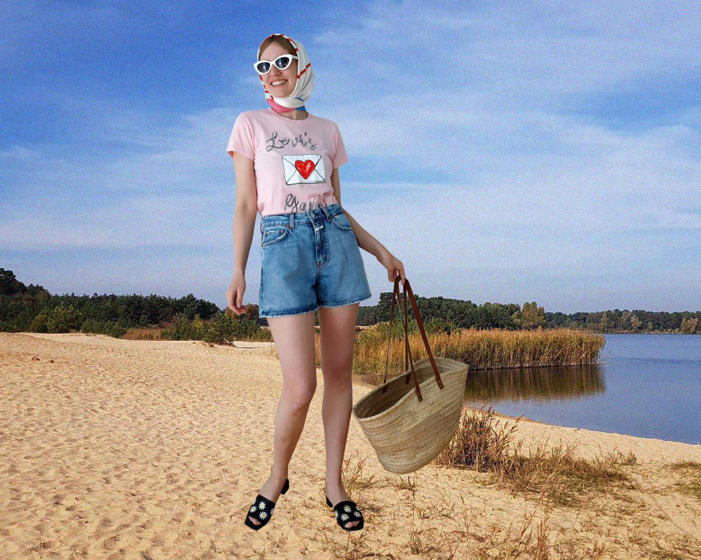 Ich kann es kaum erwarten, endlich wieder die schönsten Seen Brandenburgs zu besuchen, Sandburgen zu bauen und Melone zu essen. In meinen Träumen fahre ich übrigens mit einem Cabrio zum nächsten See, weswegen ich natürlich zum Seidenschal gegriffen habe. Klar. Dazu gibt’s Jeansshorts, Lieblingsschlappen und eine große Strandtasche mit ausreichend Verpflegung. Arrivederci!