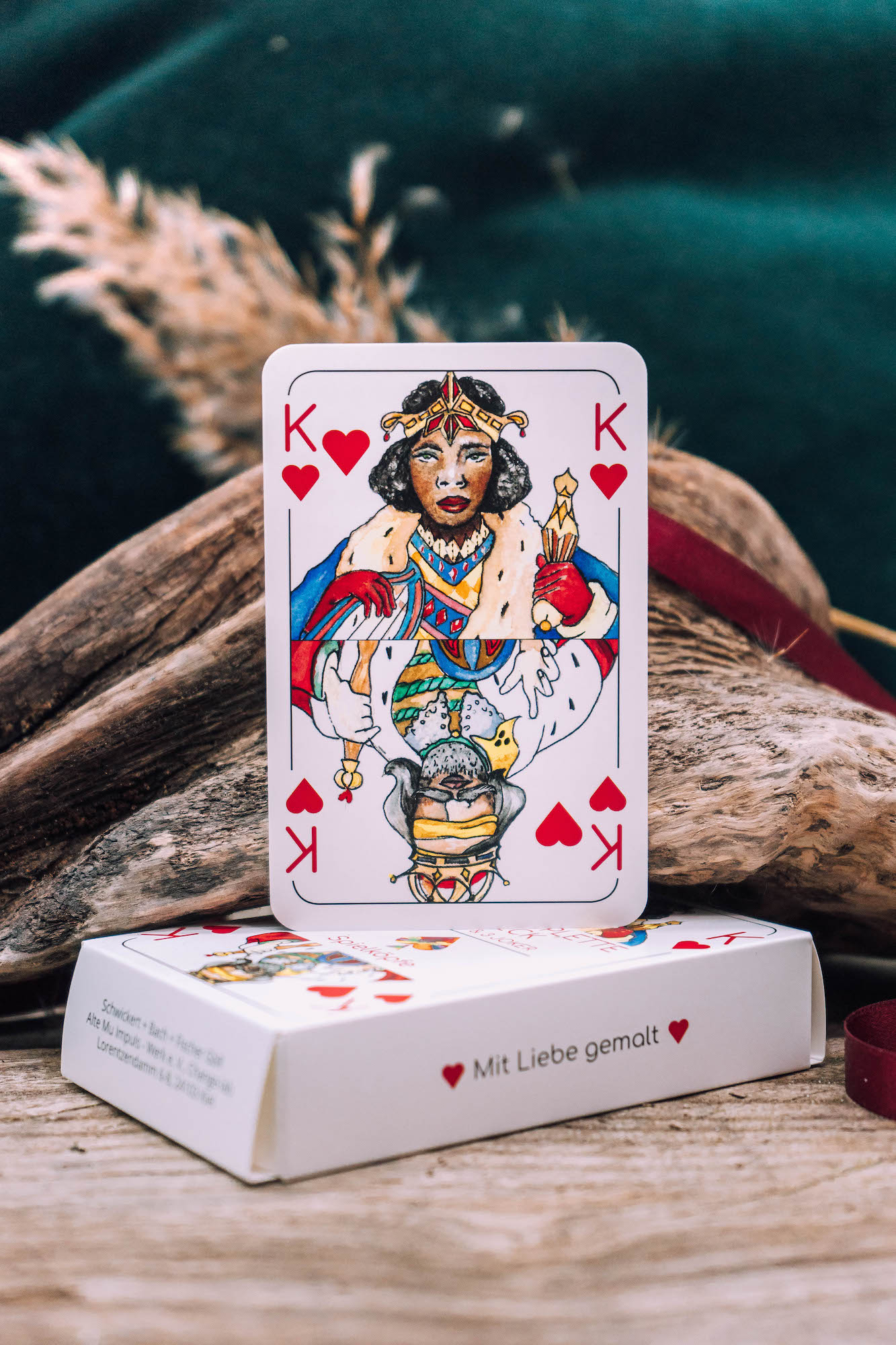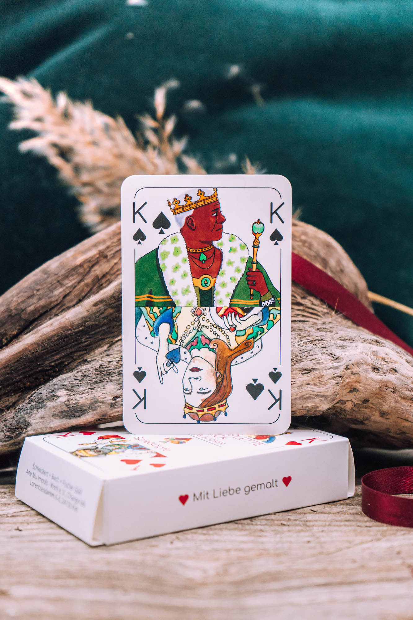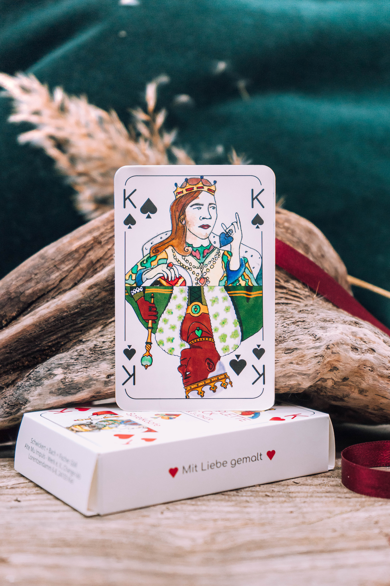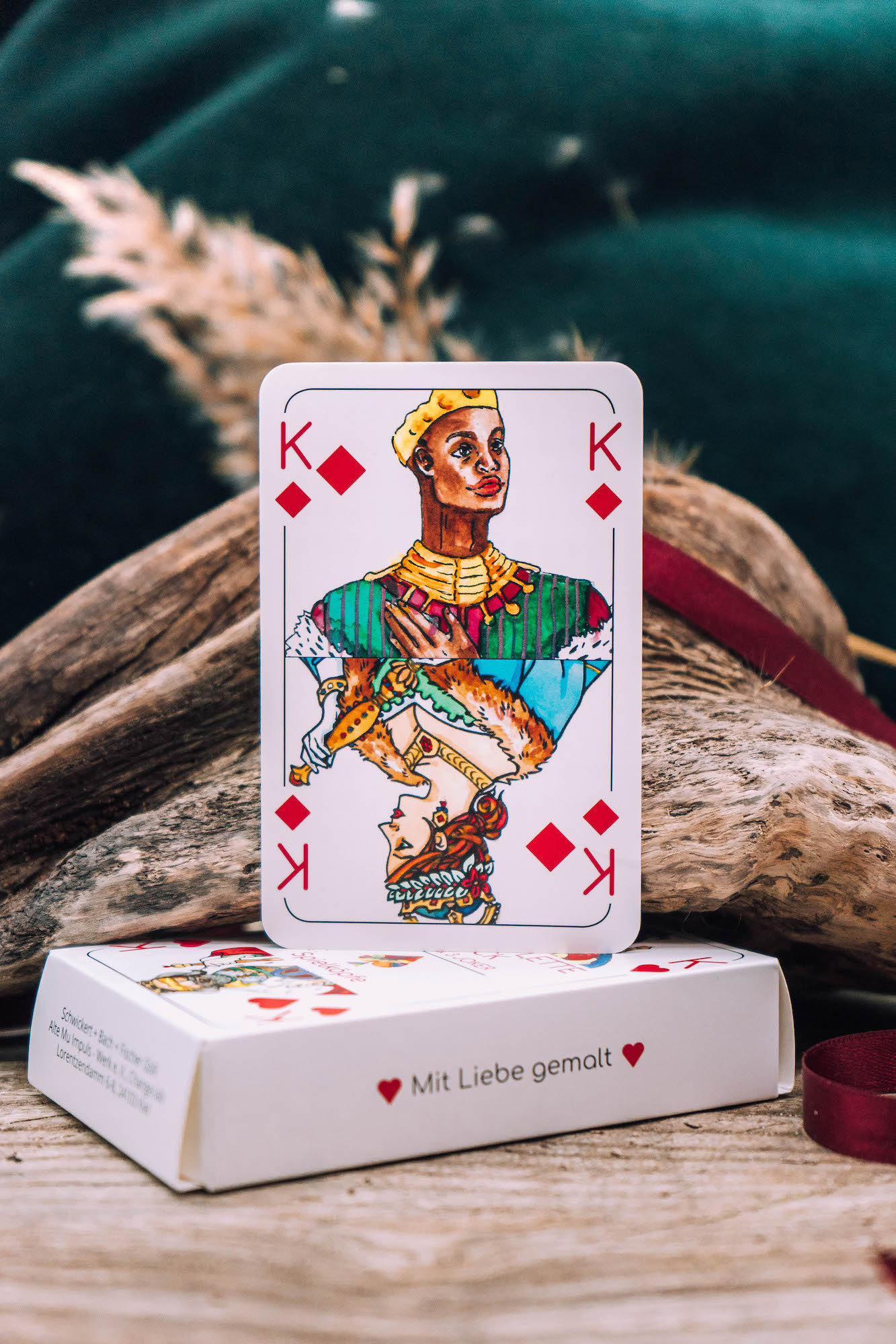 Mit „Spielköpfe“ revolutionieren die drei Studentinnen Jana, Sam und Caro derzeit das klassische Kartenspiel und setzen sich mit neu designten, diskriminierungsfreien und nachhaltigen Spielkarten für eine gerechtere sowie gleichberechtigtere Welt ein. Mithilfe der Kartenspiele möchten sie die unverkrampfte Atmosphäre von Spieleabenden nutzen, um den Austausch über Themen wie Rassismus und Sexismus, der bei vielen Menschen noch immer mit Unsicherheiten verbunden ist, zugänglicher zu machen und so zu fördern. Neben unterschiedlichen Spielkarten, deren Motive in Zusammenarbeit mit sechs Künstler*innen entstanden sind, gibt es außerdem eine Solitär-App für lange Abende allein zu Hause. Alle Produkte von Spielköpfe sowie weitere Infos findet ihr direkt auf der offiziellen Webseite.