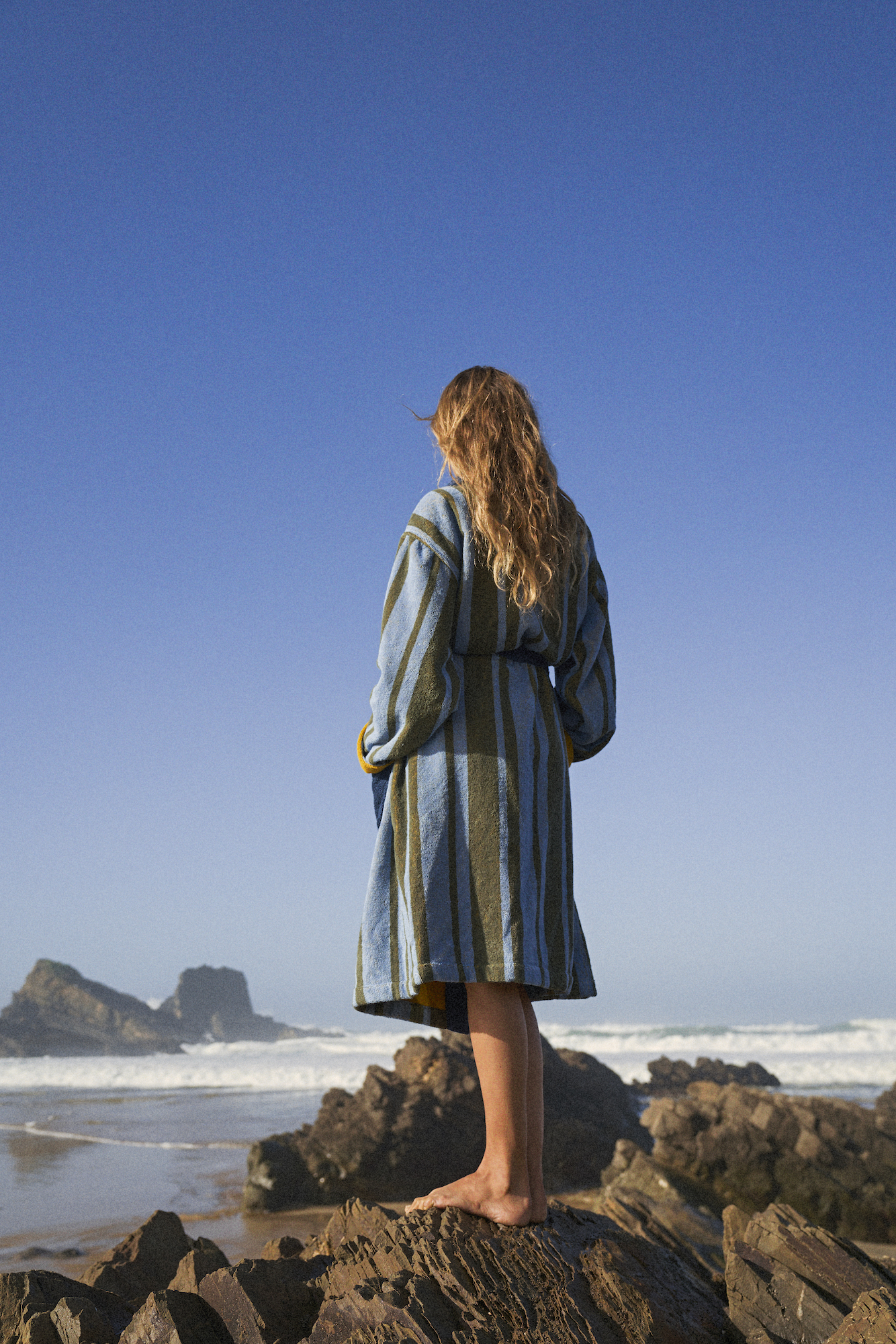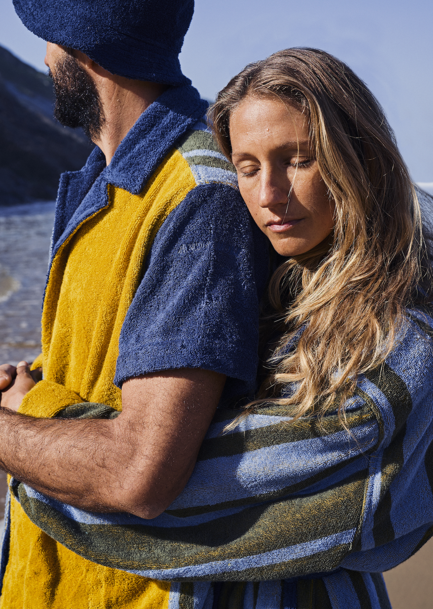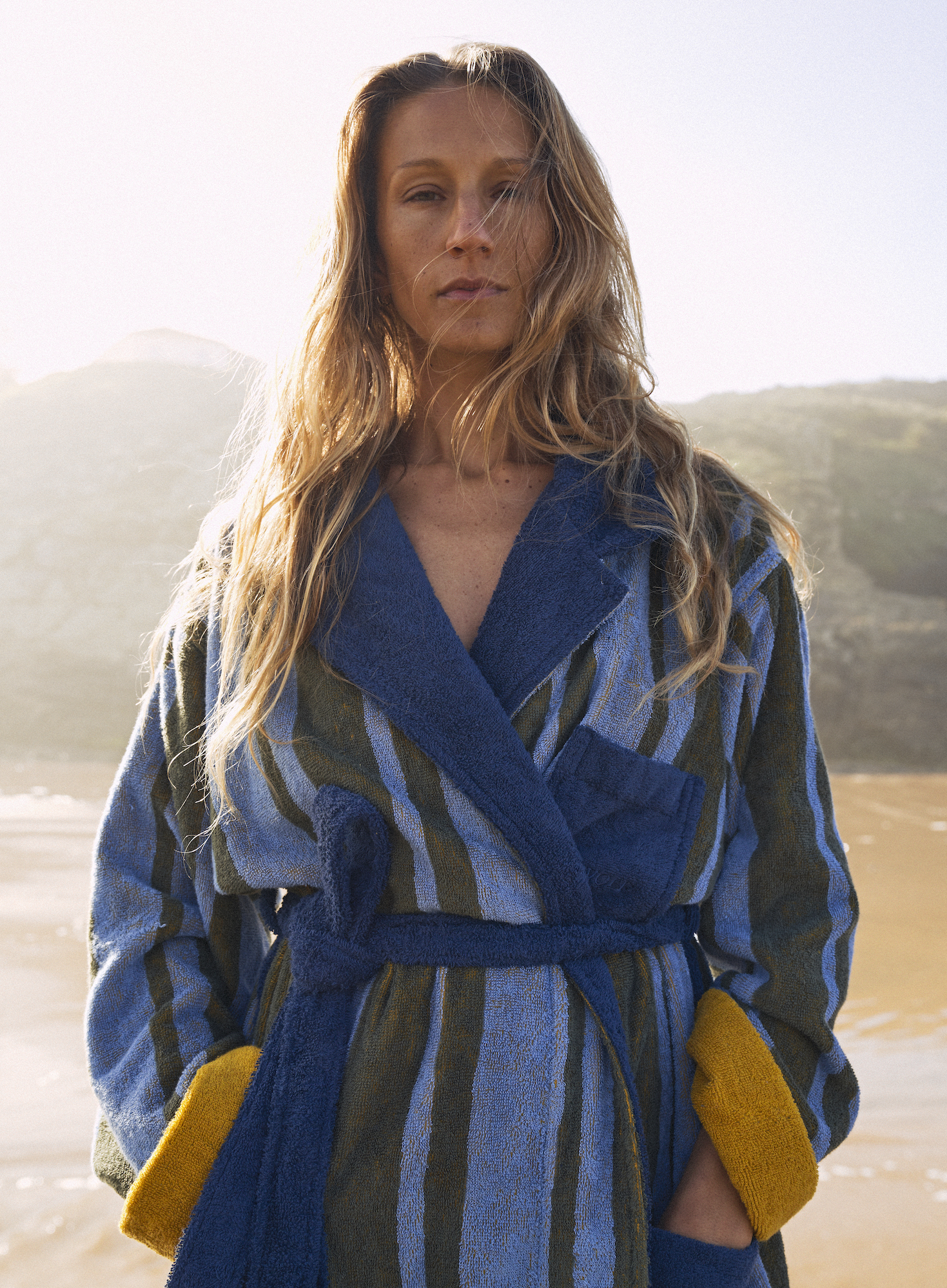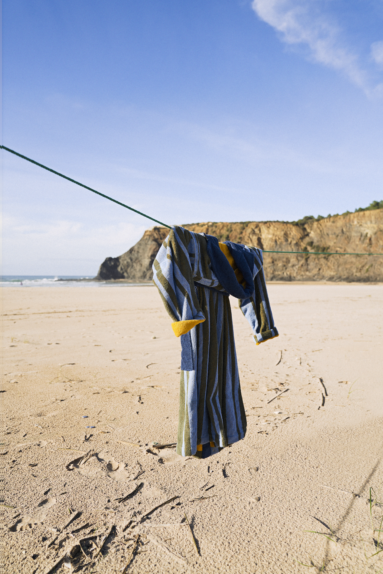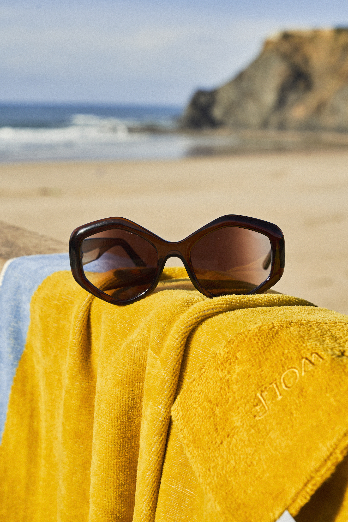 Gemeinsam mit dem Textilunternehmen Vossen lanciert die österreichische Brillenmarke Andy Wolf nun die 8-teilige Beachkollektion „Sol e Mar“. Inspiriert von der Küste Portugals fangen die Designs das Gefühl des Innehaltens, Luftholens und Sonnenbadens ein und verbinden die einzelnen Stücke so auf eine subtile Weise. Als Key-Piece gilt das Strandtuch, bei dem die Linsenformen zweier Sonnenbrillen die Grundlage für das Design bildeten, während sich die große Strandtasche, ein Bademantel sowie ein Hemd im kontrastreichen Streifenlook präsentieren. Abgerundet wird die Zusammenarbeit durch die zwei Sonnenbrillenmodelle Linda und Amado, die in je zwei Farbausführungen daherkommen und sich mal in einer geometrischen Cat-Eye-Form, mal in einer übergroßen Fassung präsentieren. Alle Stücke sind ab sofort bei Andy Wolf und Vossen erhältlich. Einen Vorgeschmack liefern bereits die Kampagnenbilder: