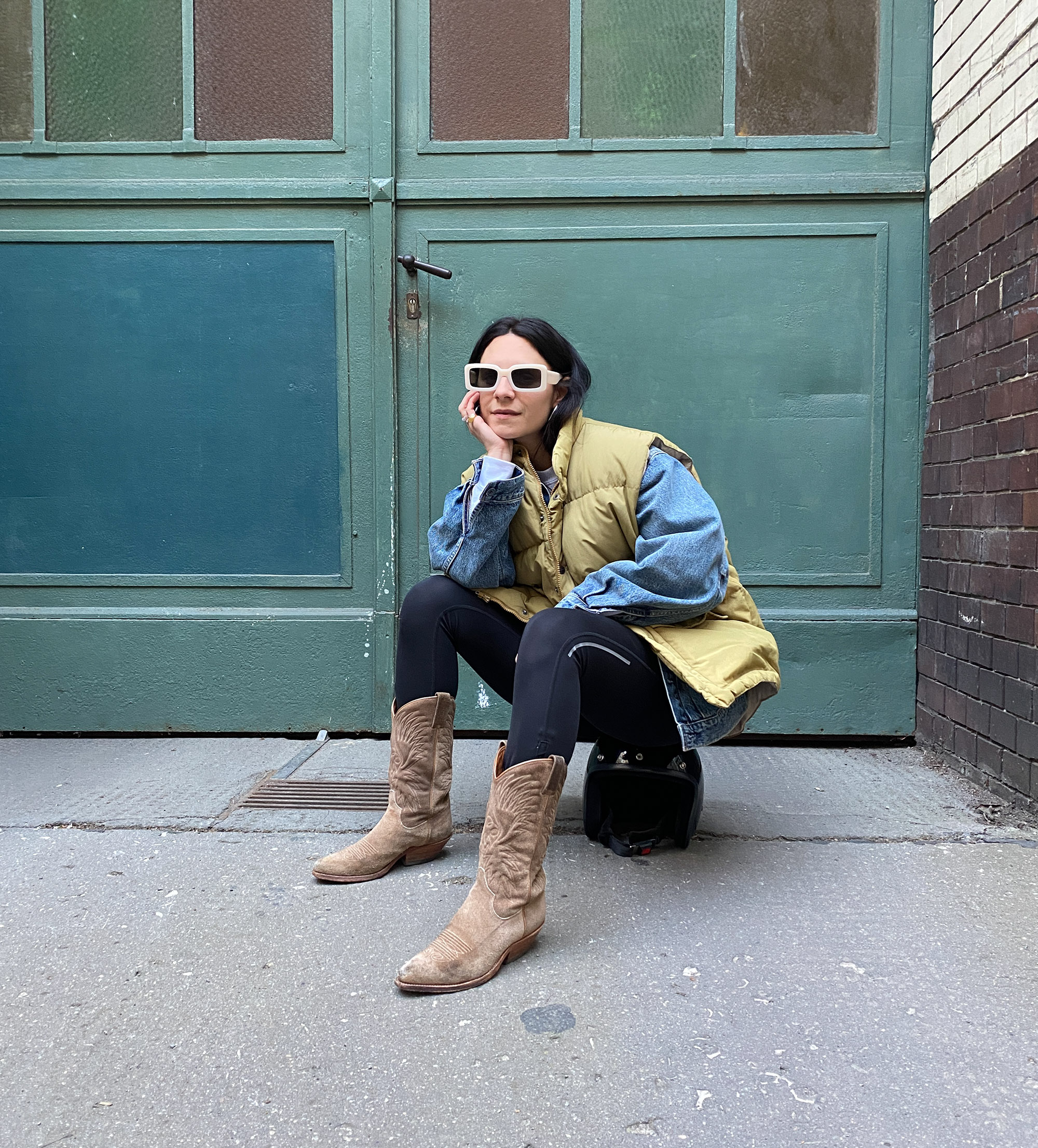 Weste: Secondhand Woolrich ähnlich hier, Jeansjacke: Levi’s
