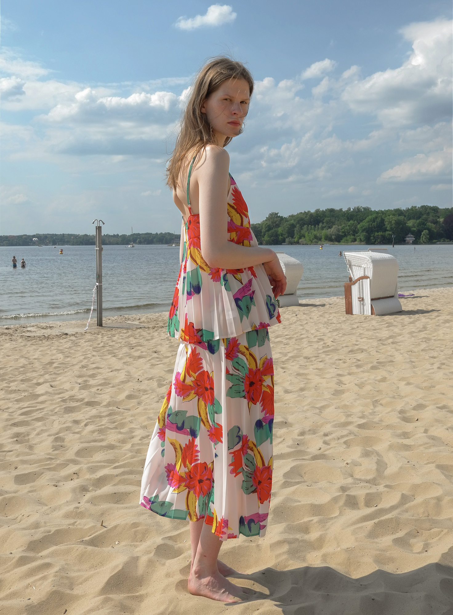 Wie ein Tag am Meer präsentiert sich die Resort Kollektion von Malaikaraiss, rückt dabei sommerliche Leichtigkeit in Form von verspielten Trägertops, sanften Plisseeröcken und lässigen Hawaiihemden in den Fokus. Sie allesamt hüllen sich in bunte Blumen-Bananen-Prints und nautische Streifen in leuchtendem Rot, lassen sich dabei sowohl untereinander als auch mit klassischen Basics und zeitloser Beachwear kombinieren. Gefertigt wurden die Designs aus upcycled Baumwoll-Gabardine aus einer Deadstock-Produktion, Tencel-Satin sowie Twill aus recycelten Plastikflaschen — es ist die erste Resort Kollektion des Labels, die zu 100 Prozent nachhaltig ist. Alle Stücke sind ab sofort exklusiv bei Malaikaraiss erhältlich.