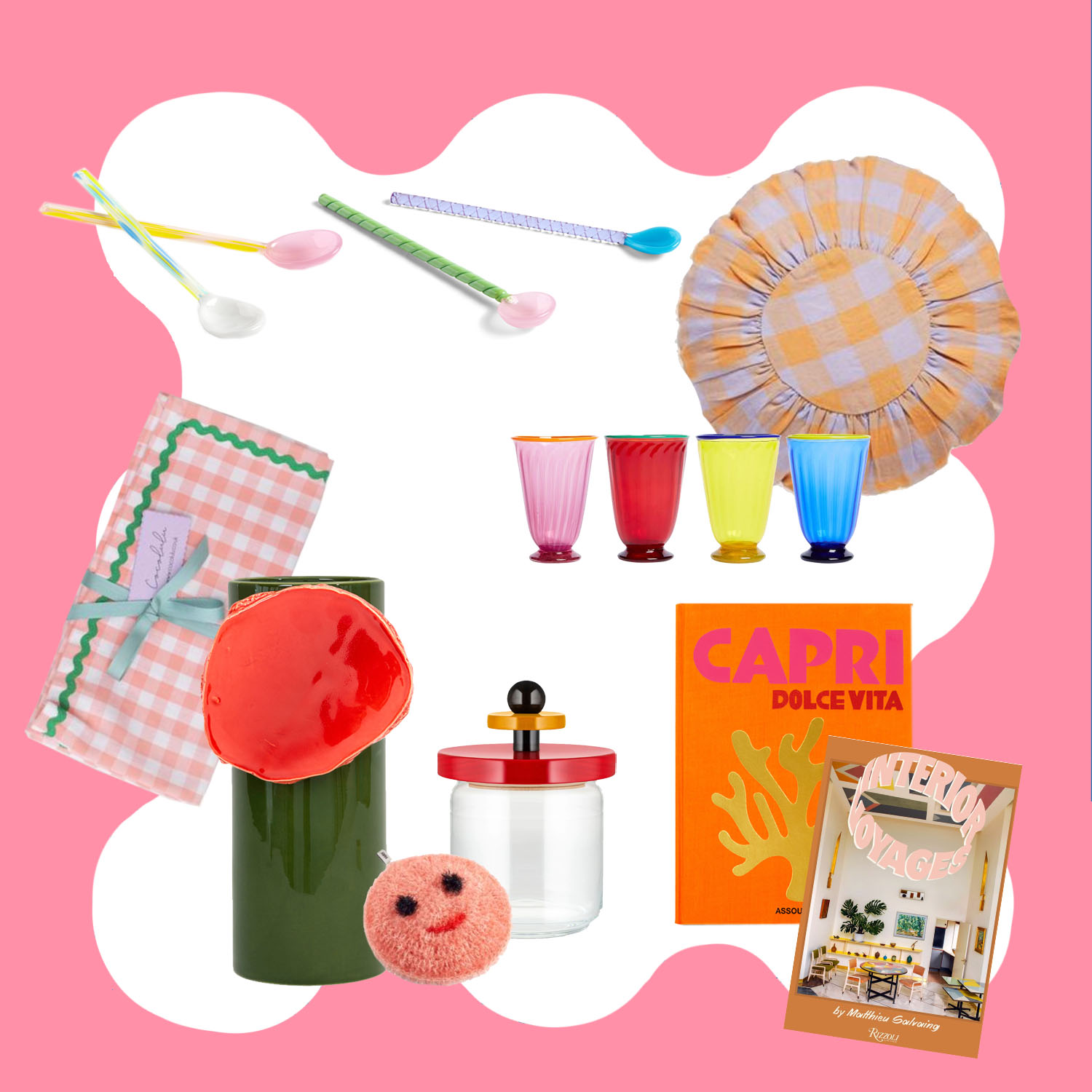 So stelle ich mir gedanklich längst vor, wie ich meinen nächsten Eisbecher mit bunten Glaslöffeln vertilge, aus ebenso knalligen Gläsern trinke, meine Blumen nur noch in geflieste Vasen stecke, mein Bett mit einer wunderschönen, pinkfarbenen Steppdecke überziehe und einen retro-inspirierten Sonnenschirm auf meinem eh schon schattigen Balkon aufspanne. In meinem Kopf geht so einiges. Sogar so viel, dass das meiste in der Realität gar nicht mehr umgesetzt werden muss. Stattdessen schaue ich mir auf Instagram und Co mit einem Bauch voller Glücksgefühle die Bilder bei anderen an und esse mich dieser Tage praktisch bei ihnen satt. Funktioniert ganz wundervoll, frei von Neid und mit ganz viel guter Laune. Und was würde so alles in meinen imaginären Warenkorb wandern? Oho, eine riesige Menge. So viel, dass es eh schon unrealistisch wäre, überhaupt irgendwo anzufangen (na gut, die bunten Löffelchen haben es mir wirklich und wahrhaftig schwer angetan). Aber vielleicht findet ihr ja eine Kleinigkeit, die nicht länger nur virtuell angeschmachtet werden soll, sondern alsbald auch daheim bei euch steht und leuchtet.
