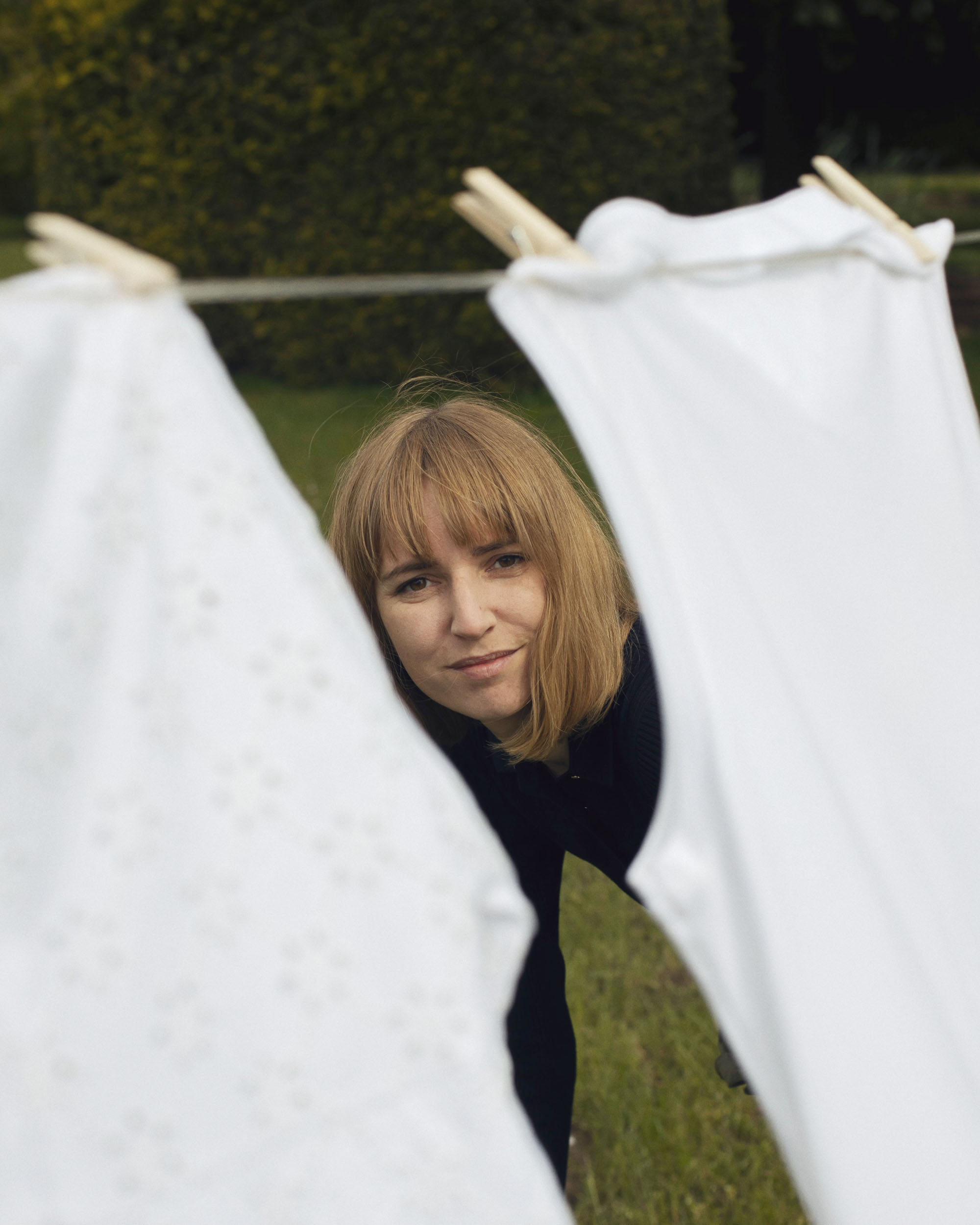 Olivgrüne Jacke (bald online) | olivgrüne Kids-Version | cremefarbener Kids-Cardigan | weißes Polo-Kleid | weißes Kids-Kleid mit Lochstickerei | Kids-Jeans mit Stickereien (bald online)| Kids-Strickpullover | gemusterte Kids-Bluse & Mama-Pendant (bald online)