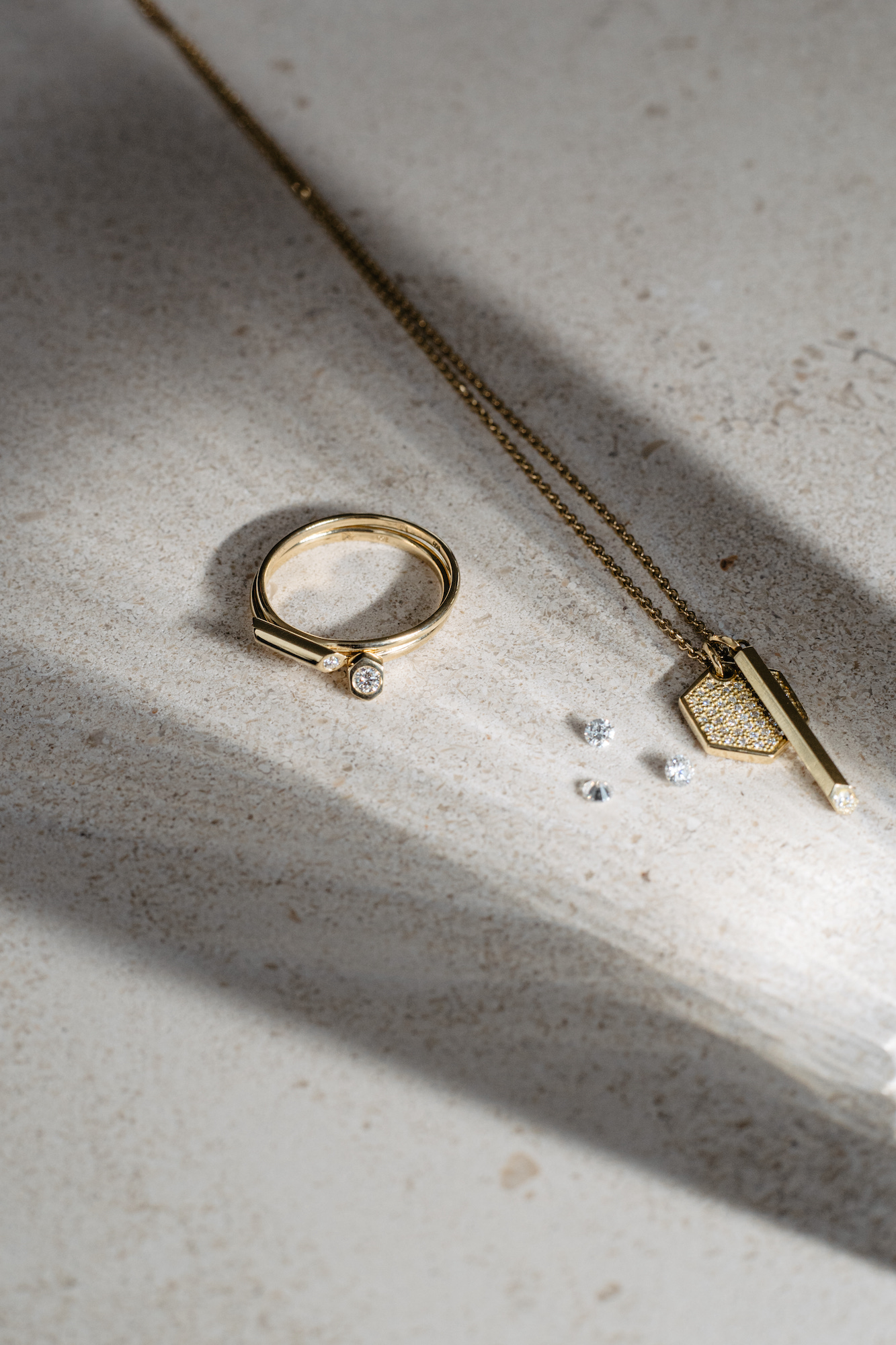 Passend zum Sommerbeginn lanciert Maren Jewellery neue Schmuckstücke, die sich in klaren Formen wiegen und auf filigrane Elemente setzen. Inspiriert ist die zeitlose Kollektion, die den Namen „Sunrays“ trägt von der Schönheit der Sonne — ein Aspekt, der sich auch in den funkelnden, synthetischen Eco-Diamanten sowie dem recycelten 18 Karat Gold widerspiegelt. Neben zarten Ohrsteckern samt kantigen Formen sowie simplen und dennoch besonderen Ringen finden sich ein Anhänger in Hexagon-Silhouette sowie eine Gliederkette samt passendem Armband wieder. Alle Schmuckstücke werden unter nachhaltigen sowie fairen Bedingungen nach einer jeden Bestellung in Handarbeit in Deutschland gefertigt und sind ab sofort bei Maren Jewellery erhältlich.