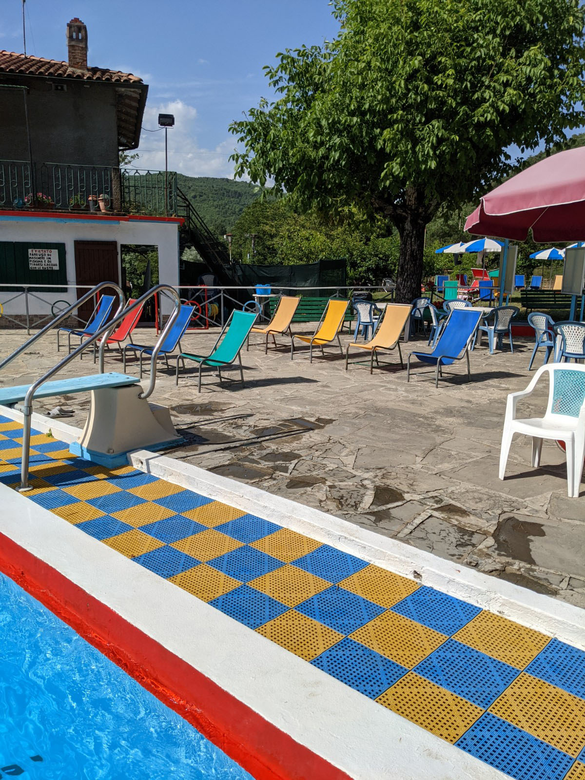 Das Piscina Molino delle Rocche aka das Schwimmbad meiner Träume original aus den 50ern. Zwar gibt es hier keine Pommes, dafür muss man* aber auch keine Badekappe (wie sonst üblich) tragen. Bei uns war es sehr leer. Die Preise sind zwar happig, aber es war richtig schön dort.