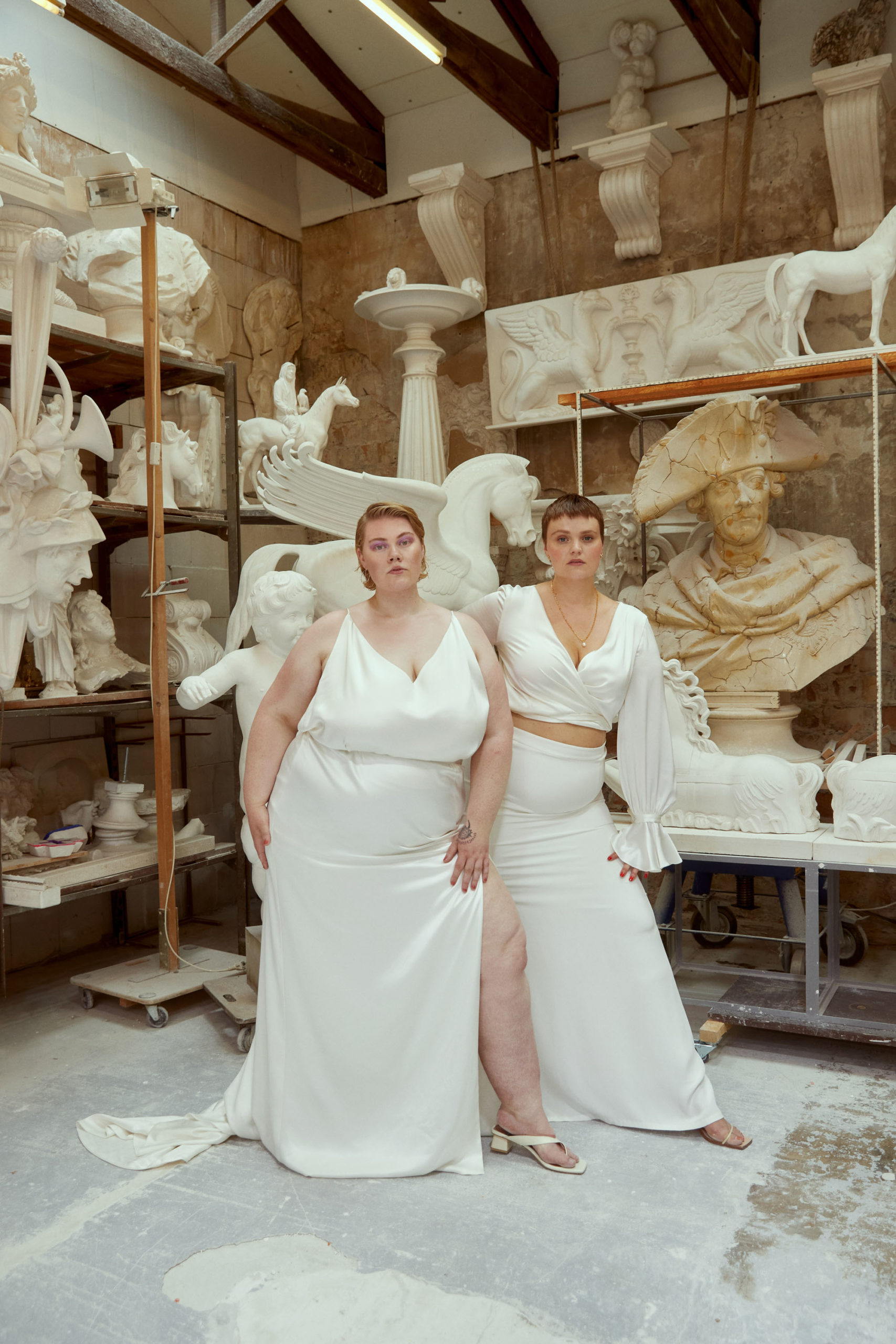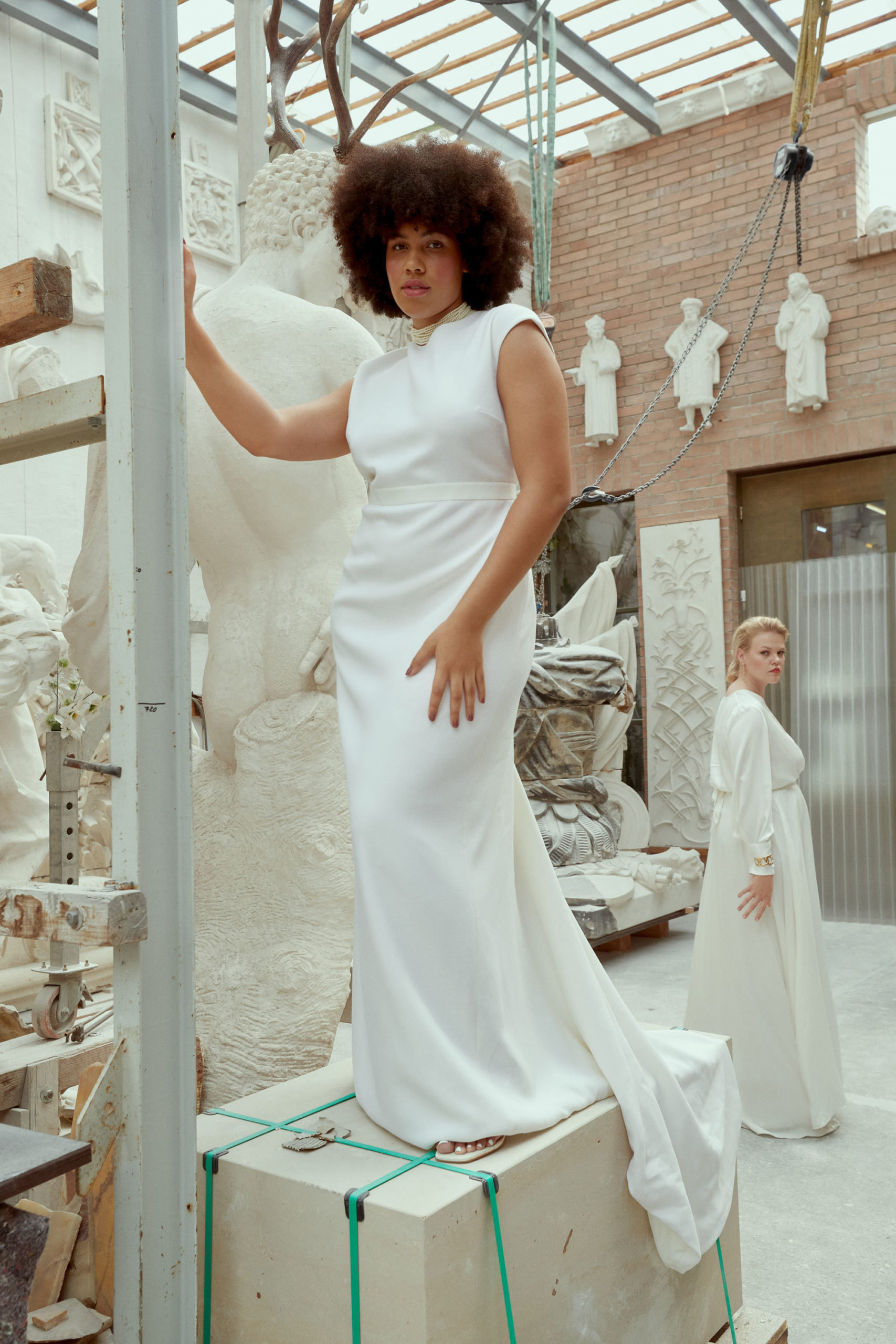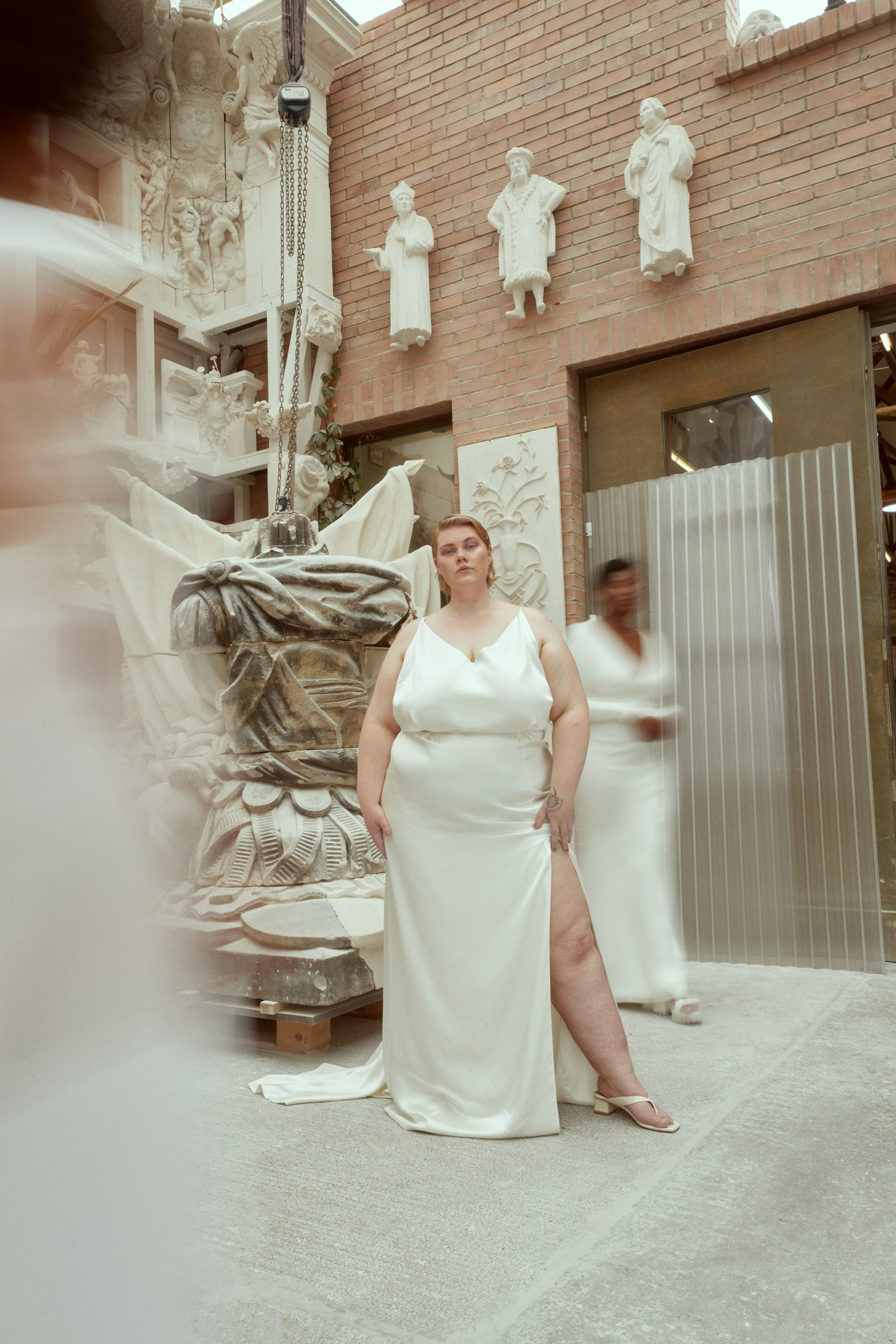 Zwar bieten bereits alle Designer*innen, mit denen der neu gedachte Bridal Concept Store zusammenarbeitet, Designs auf Anfrage in allen Größen an, aber zu einer Welt, die alle Körperformen inkludiert, gehört immer auch Sichtbarkeit.