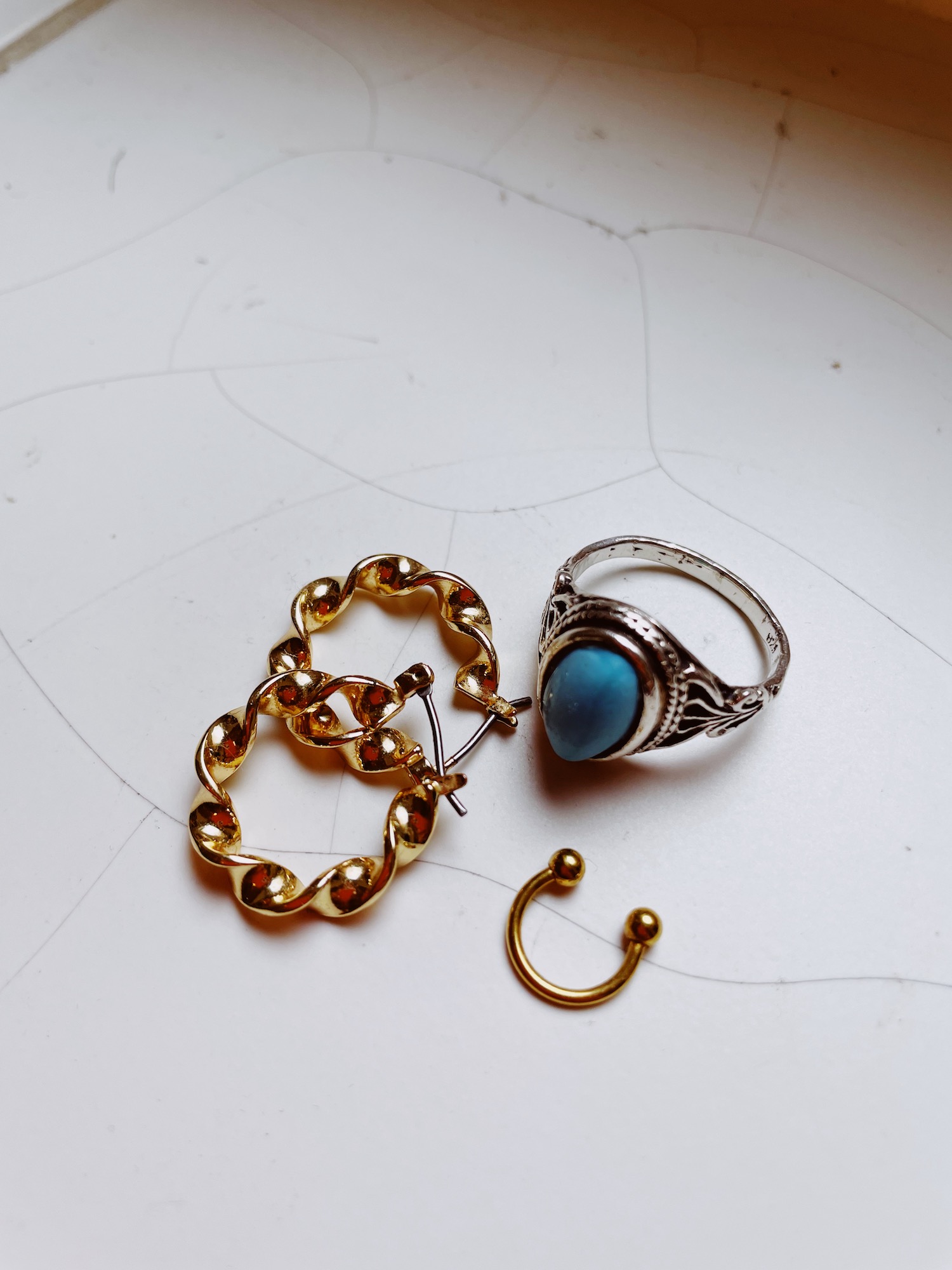 Immer gehen meine goldenen Creolen von and other stories, mein silberner Vintage-Ring, den mir mein Mann vor Ewigkeiten geschenkt hat und das Fake-Septum 😀