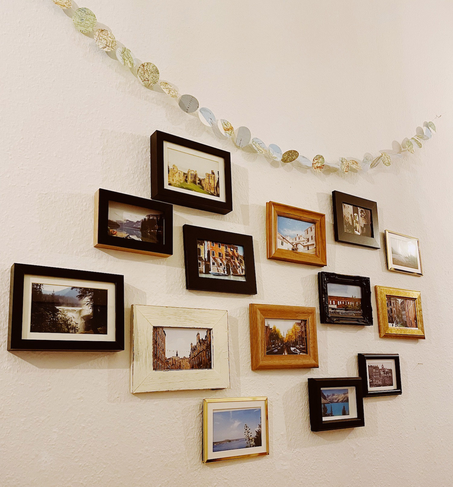 Diese Wand in unserem Flur besteht nur aus Fotos, die ich in Urlauben gemacht habe. Viele Besucher*innen fragen, woher wir die schönen Postkarten haben :D. Ich liebe Fotografie und bin deshalb besonders stolz auf dieses Schmuckstück. Ansonsten ist mein Mann für alles, was bei uns mit Interior zu tun hat, zuständig. Mich interessiert Einrichtung wenig bis gar nicht – hauptsache, es ist gemütlich!