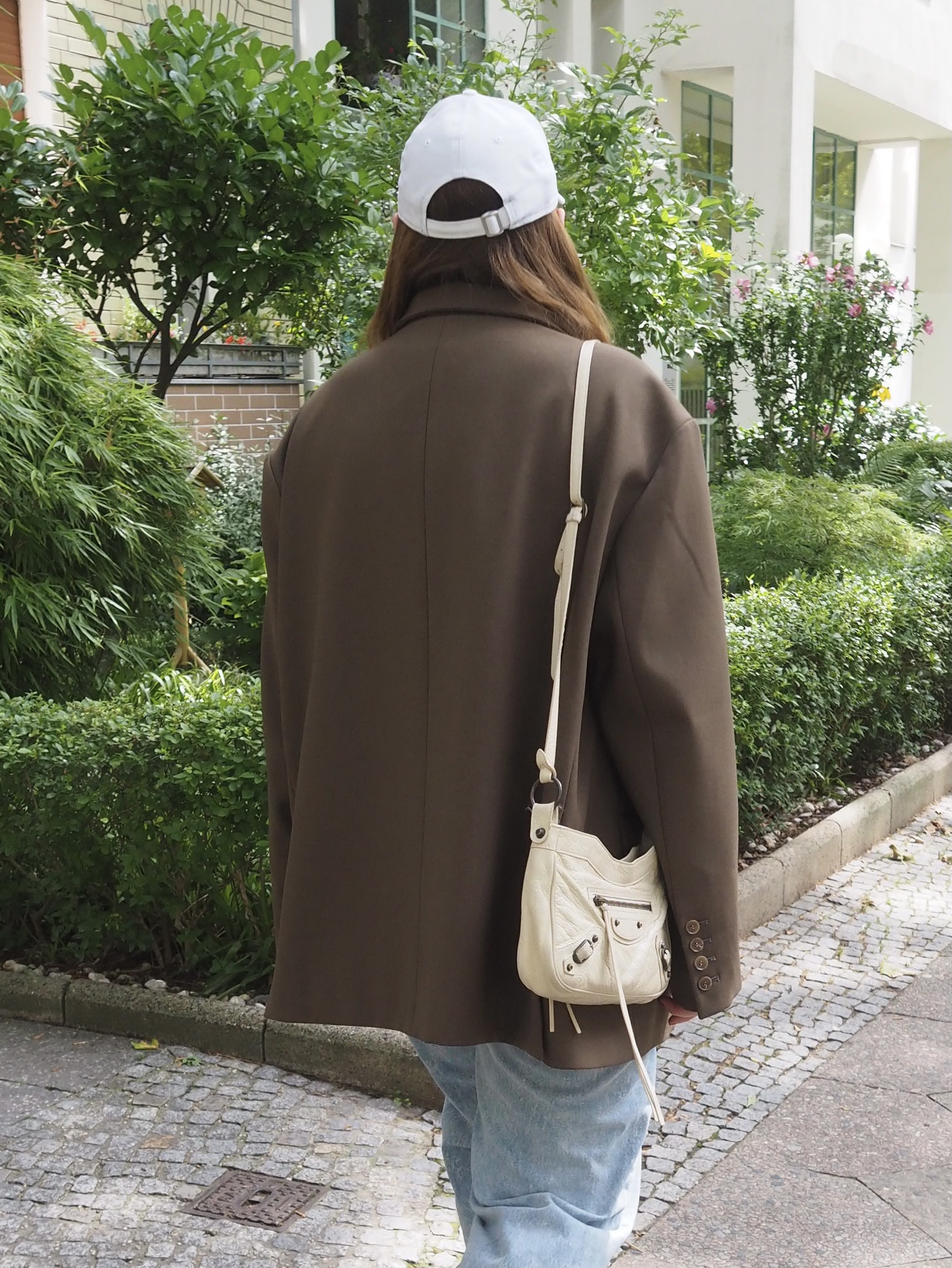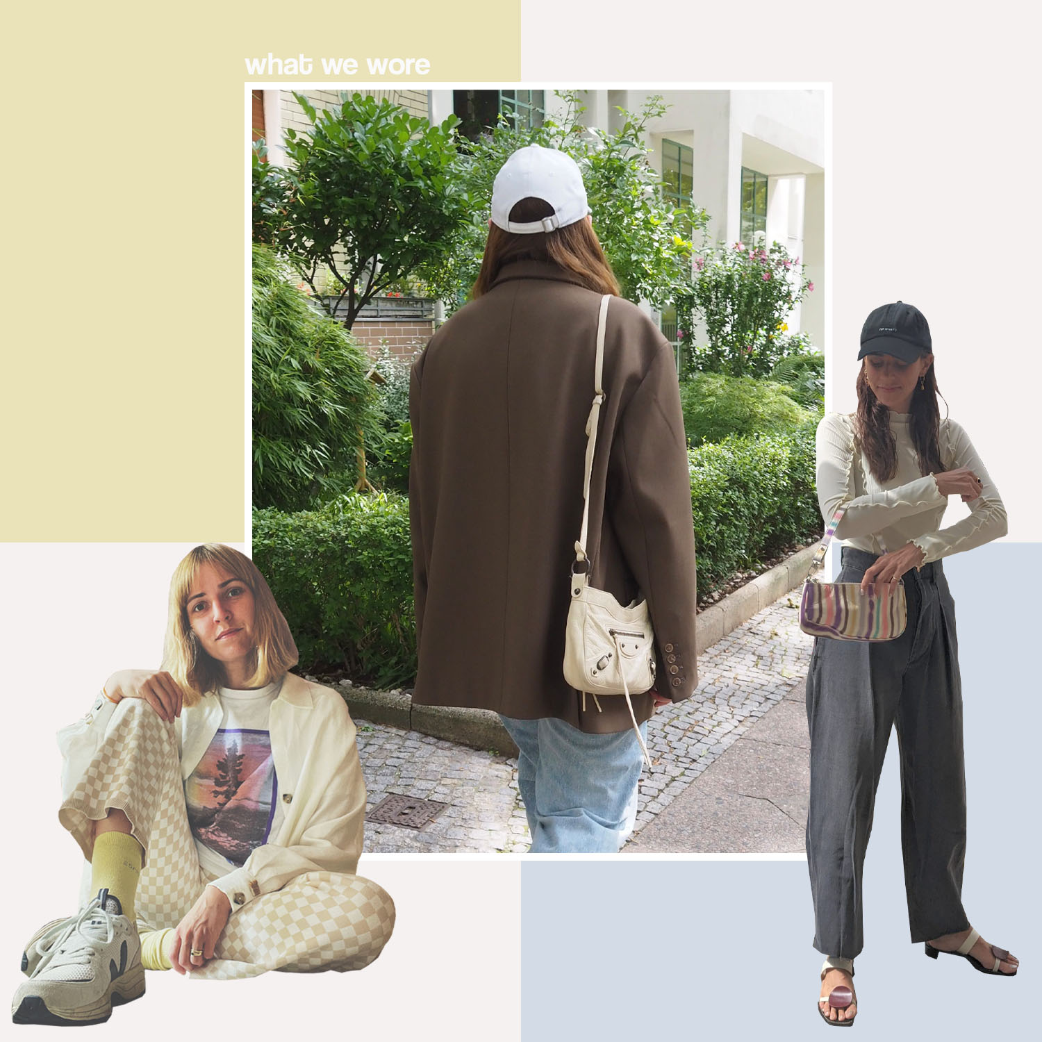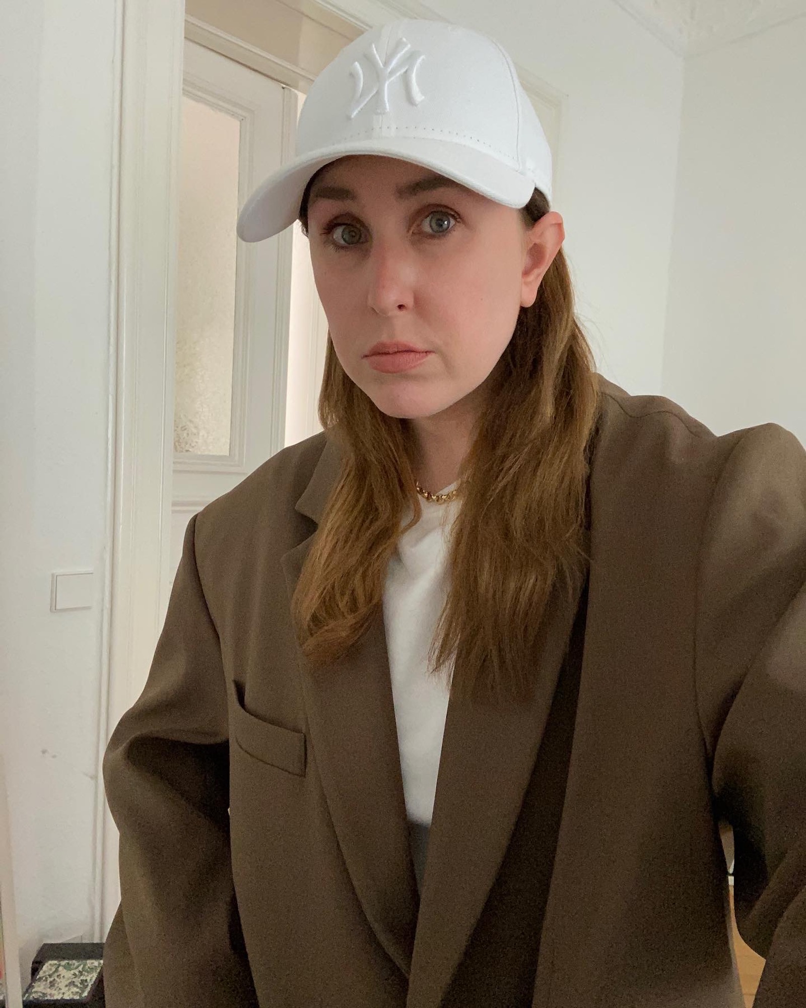 Blazer: Frankie Shop (nicht mehr erhältlich, ähnlich hier), Jeans: Eytys (nicht mehr erhältlich), Kappe: New Era, Tasche: Balenciaga via Vestiaire Collective