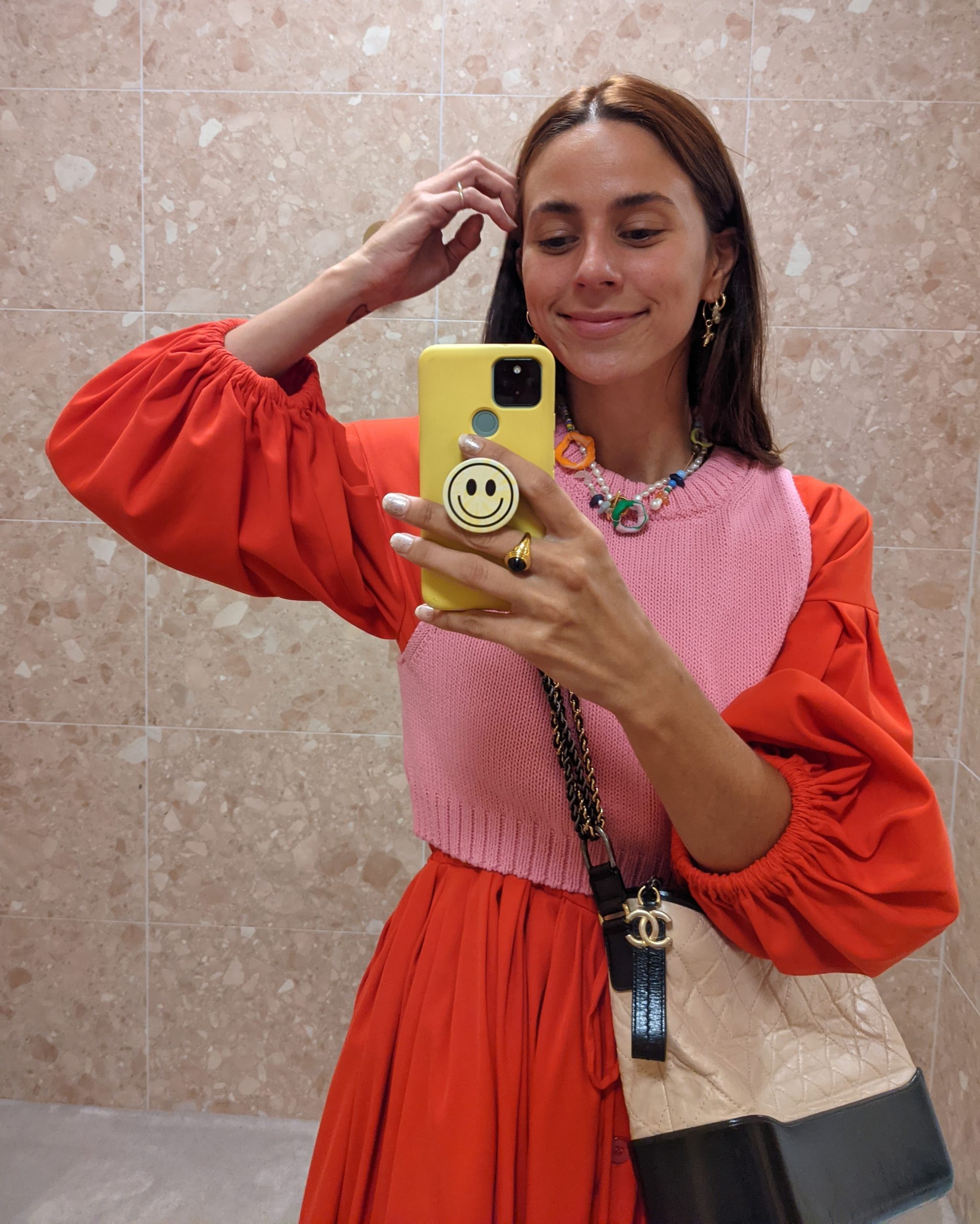 Pullunder: & other stories, Kleid: Stine Goya, Tasche: Chanel Gabrielle Bag, Kette: Evi und Charly