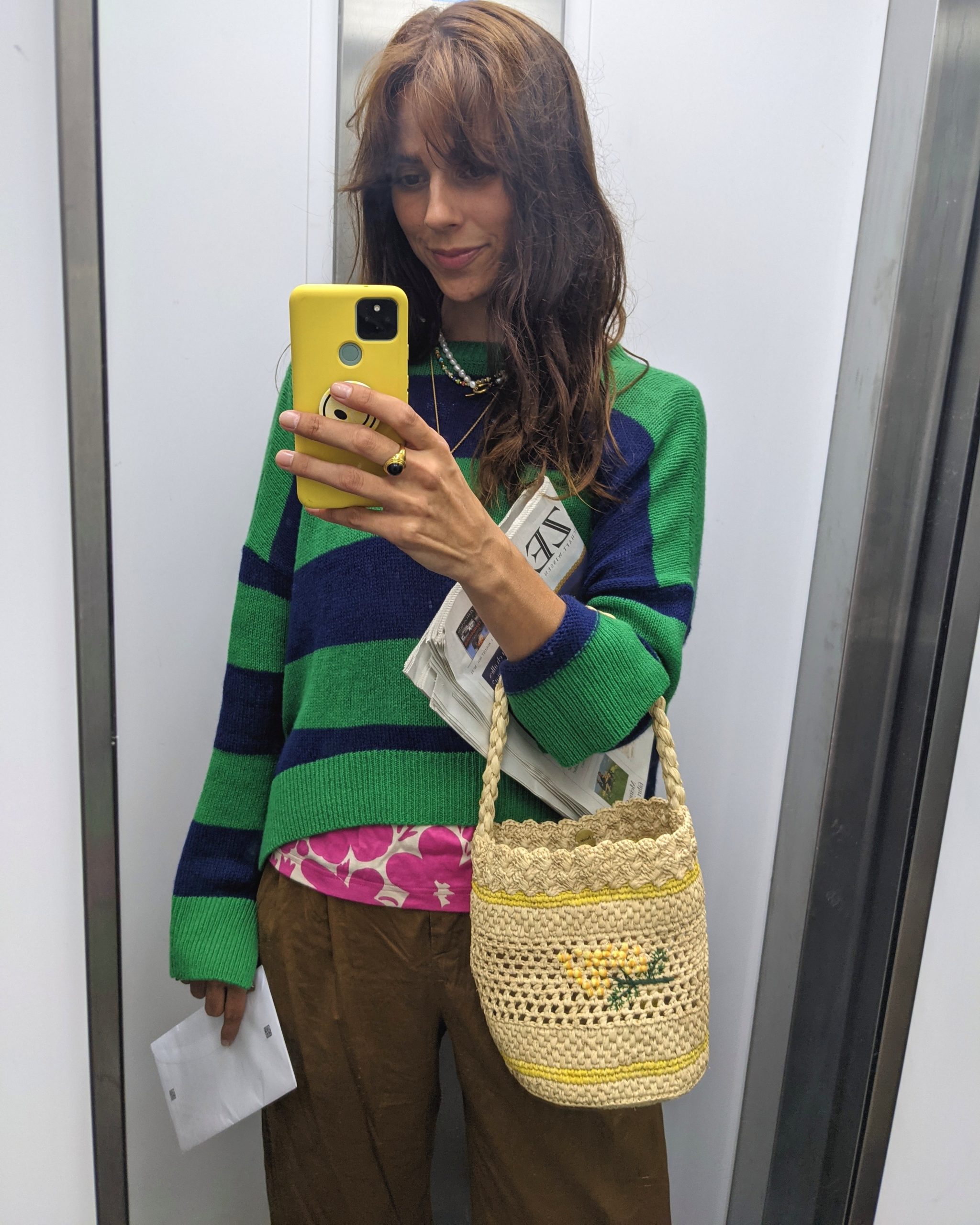 Pullover: Marni, T-Shirt: Marimekko x Uniqlo, Hose: Max Mara (2nd Hand), Tasche: Rouje