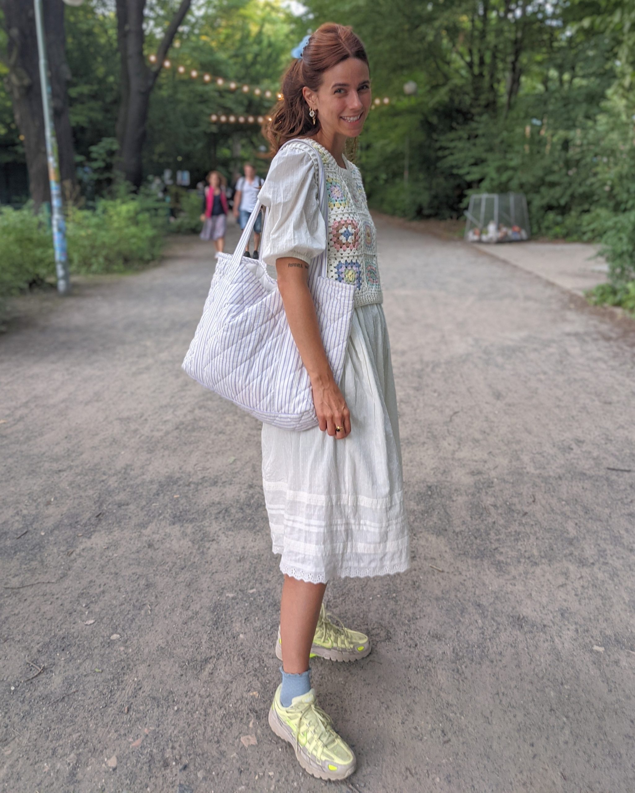Kleid: Minimum, Pullunder: Mango, Sneaker: Nike P6000, Tasche: Envii x Fabrek