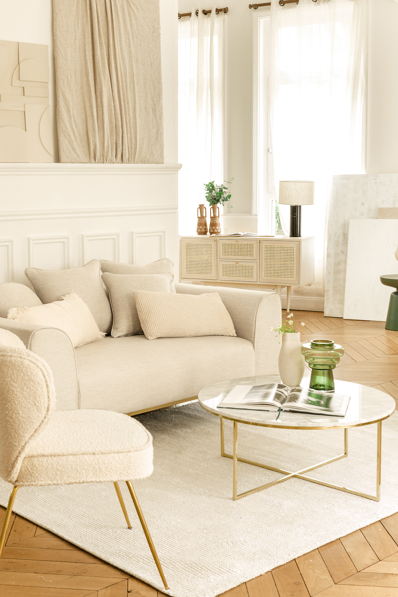 „Il dolce far niente — das süße Nichtstun“ lautet das Credo der diesjährigen Pre-Fall Kollektion des Interior-Labels NV Gallery. Inspiriert ist sie dabei von zwei Jahreszeiten zugleich, vereint so das Freiheitsgefühl des Sommers mit der Wärme und Behaglichkeit des Herbstes. Inmitten einer sanften und hellen Farbpalette finden sich softe Materialien wie Bouclé und Samt sowie goldfarbene und mediterrane Akzente. Auf eine subtile Weise bringt NV Gallery den Anspruch an Klarheit und Simplizität mit dem warmen Wohlgefühl zusammen, schafft so einen Ort der Ruhe und der Entspannung. Zu den Highlights der Kollektion zählt etwa der Retro-inspirierte Stuhl Umberto, der in diversen Ausführungen daherkommt sowie ein offenes Regal und eine Leuchte samt delikaten Plissee-Details. Alle Designs sind ab sofort bei NV Gallery erhältlich, einen ersten Vorgeschmack liefern bereits die Kampagnenbilder: