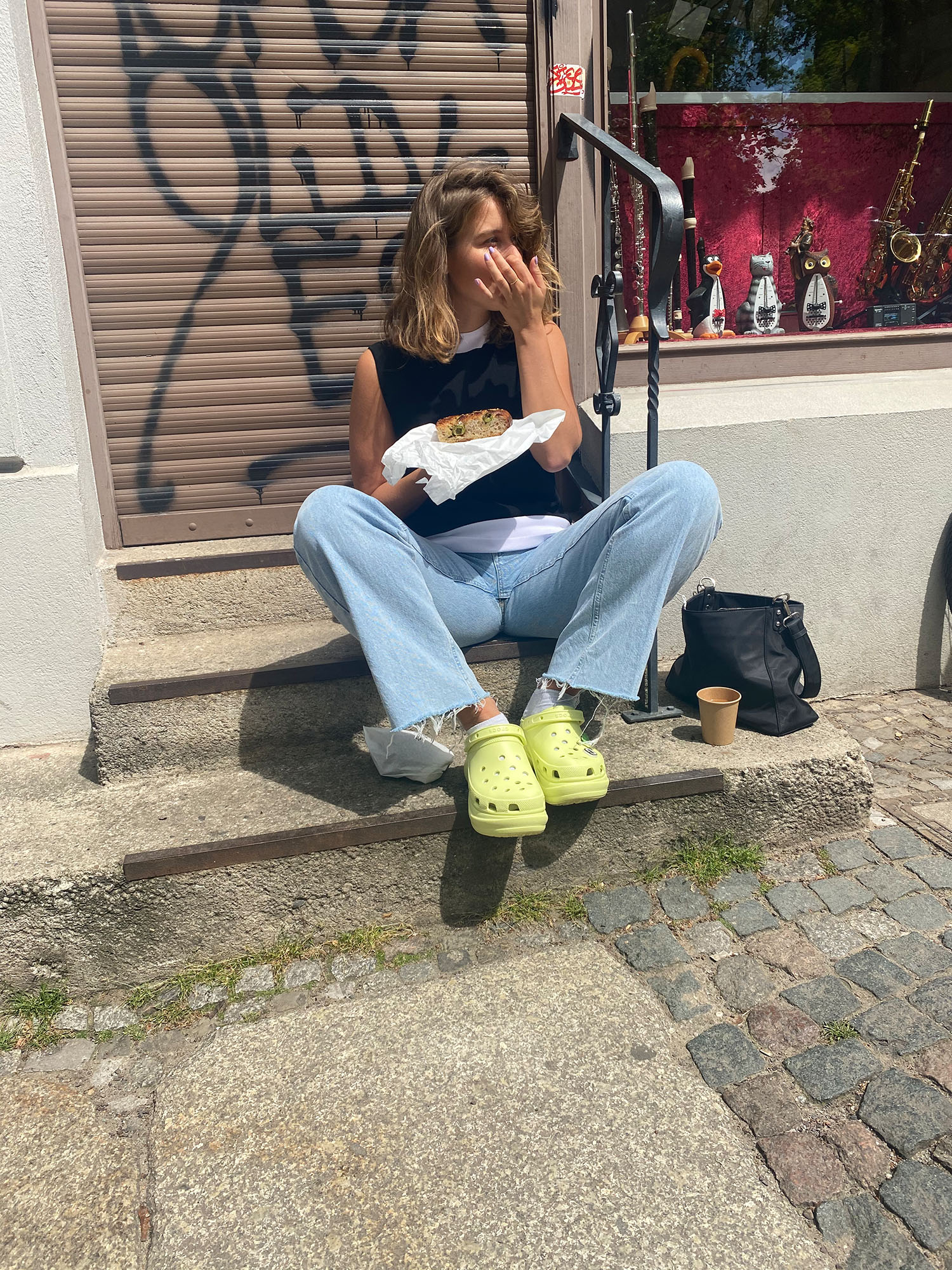 Außerdem bin ich ein großer Fan von prominenten Hosen und knalligen Farben! Auch ein Nebeneffekt des Älter- und Selbstbewussterwerdens: Ich trage nicht mehr nur noch die schwarze Röhre und die weißen Superstars.