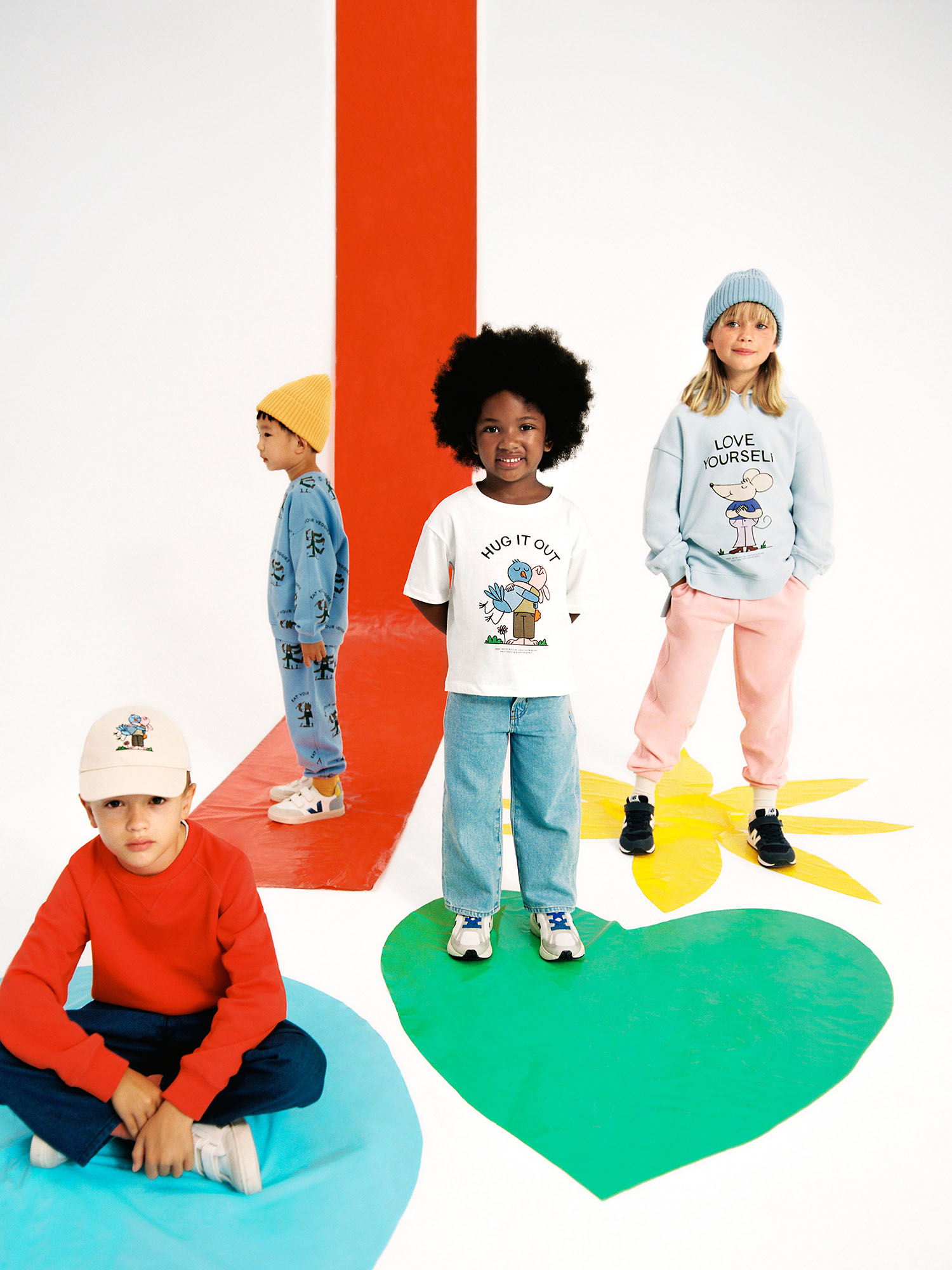 Frisch in den Regalen findet ihr außerdem die neueste ARKET Artist Editions für die Kleinsten, bei der immer wieder Künstler*innen dazu eingeladen werden, eine Caspule Collection mit den jeweiligen Designs zu verzieren. Und für die aktuelle Artist Editions hat sich das schwedische Team die deutschen Künstlerin Christina Moreland geschnappt und ihr freie Hand gelassen. Christina lebt in Kalifornien und widmet sich in ihren Cartoons im Vintage-Stil, die in verspielter Umsetzung auf gesellschaftlich relevante Themen aufmerksam machen will, vor allem den Themen Queerness und dem Umgang mit verschiedensten Ethnien.