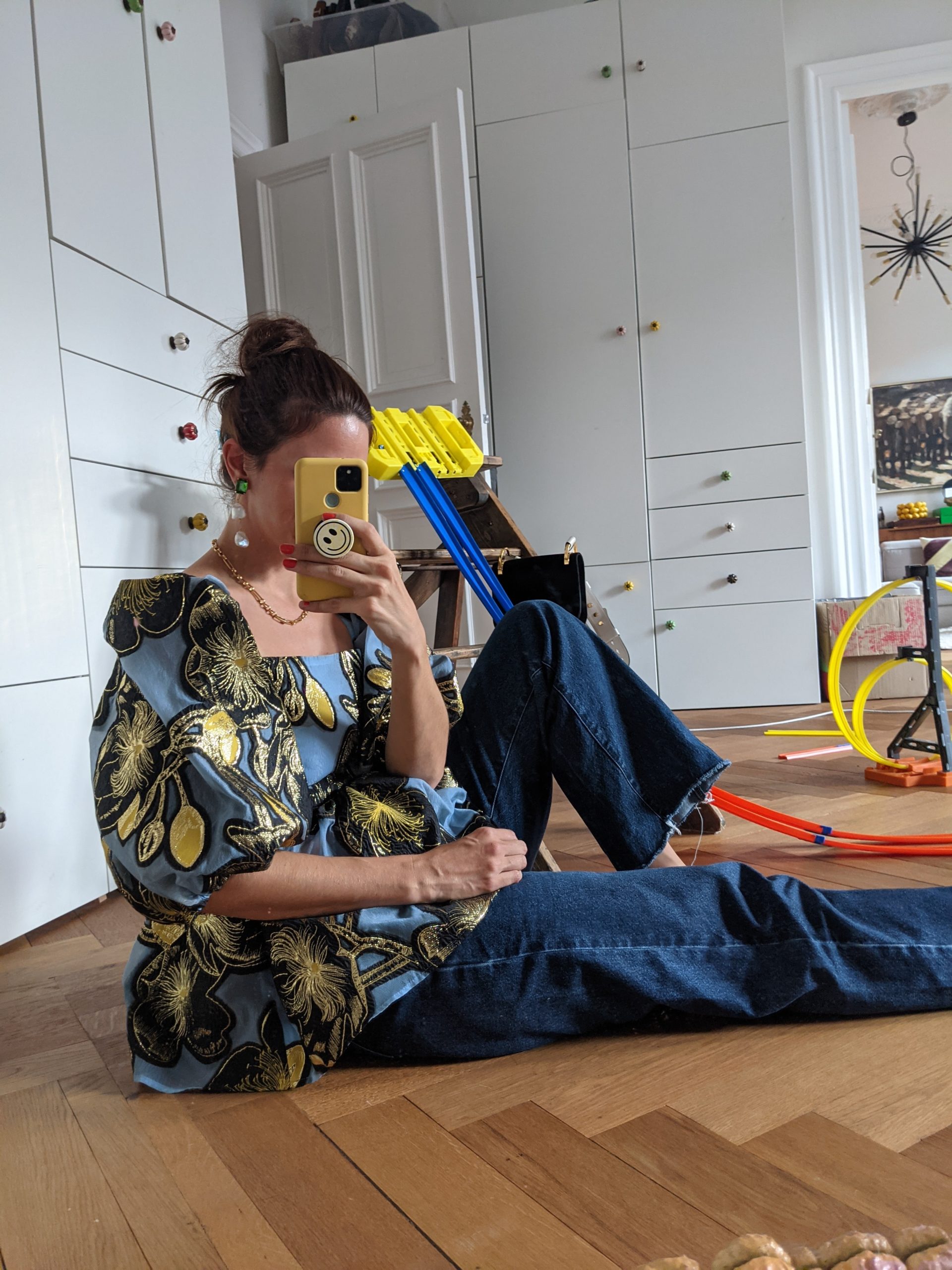 Top: Stine Goya (2019), Ohrringe: Romantico Romantico, Jeans: Marques Almeida (2nd hand)