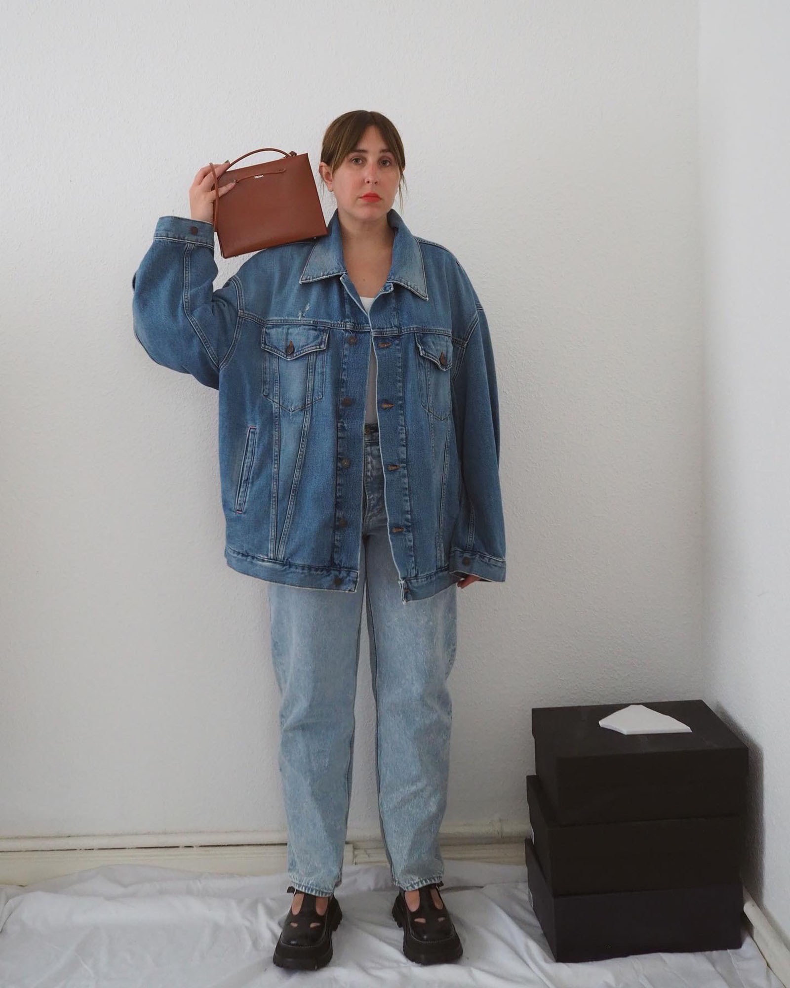 Jeansjacke: Acne Studios, Hose: Eytys (nicht mehr erhältlich), Mary-Janes: Burberry