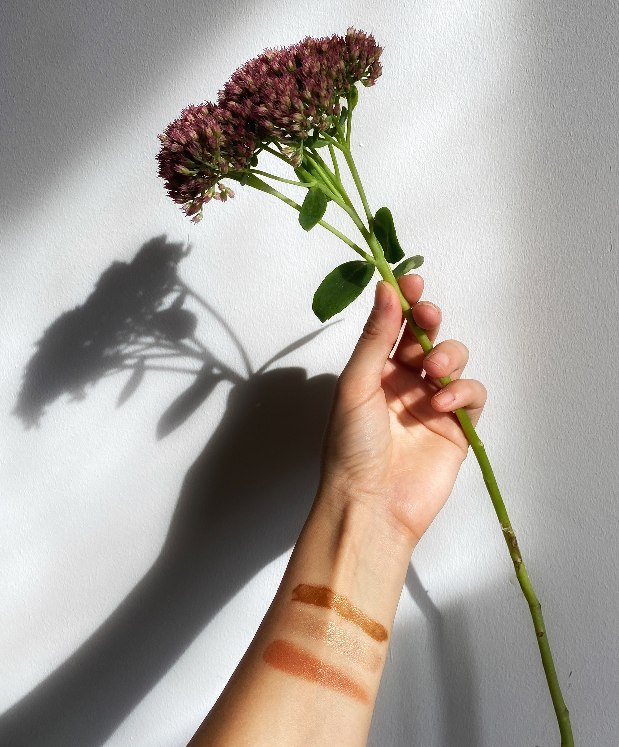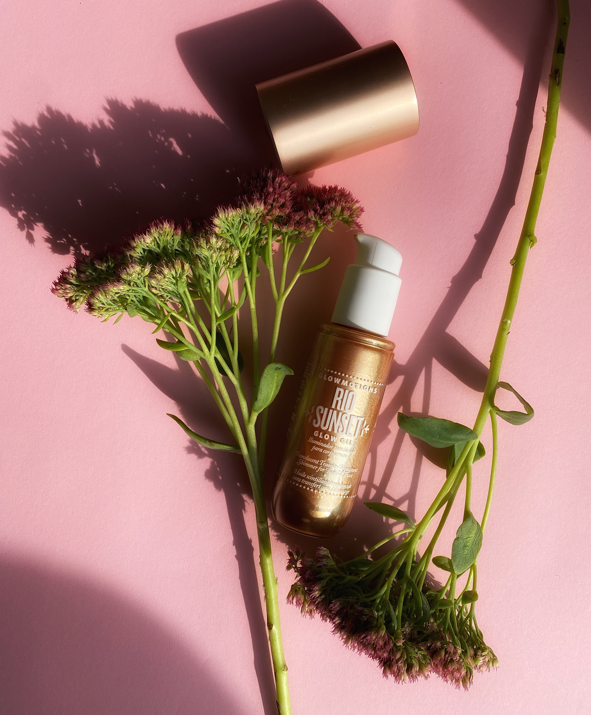 Wer nicht beim Gesicht aufhören möchte (bitte versteht mich nicht falsch, ihr solltet Produkte wie Make-up, Primer und so weiter natürlich auch immer über den Hals ziehen, um harte Kanten vermeiden), die*der greift zum Glanzöl Rio Sunset von Sol de Janeiro. Es handelt sich um ein Trockenöl mit einem unwiderstehlichen, schimmernden Glanz. Da es sehr intensiv ist, mische ich gerne etwas zu meiner Bodylotion und verteile es über mein Dekolleté und meine Arme. Fertig ist der Look: Sonnenbaden ohne Folgeschäden würde ich sagen. Genießt eure innere Sonne.